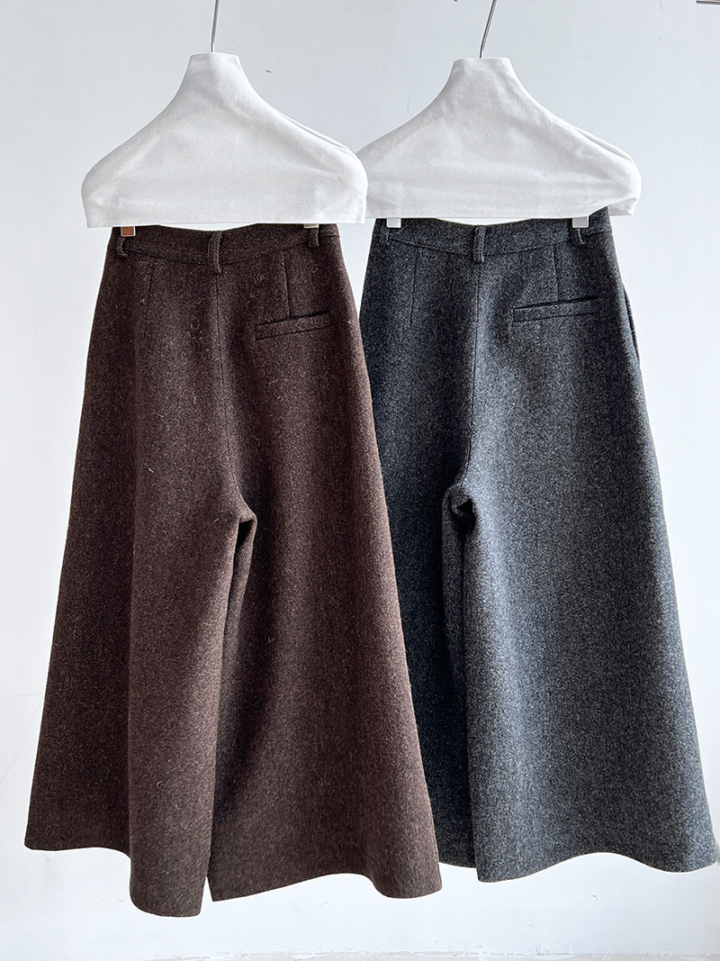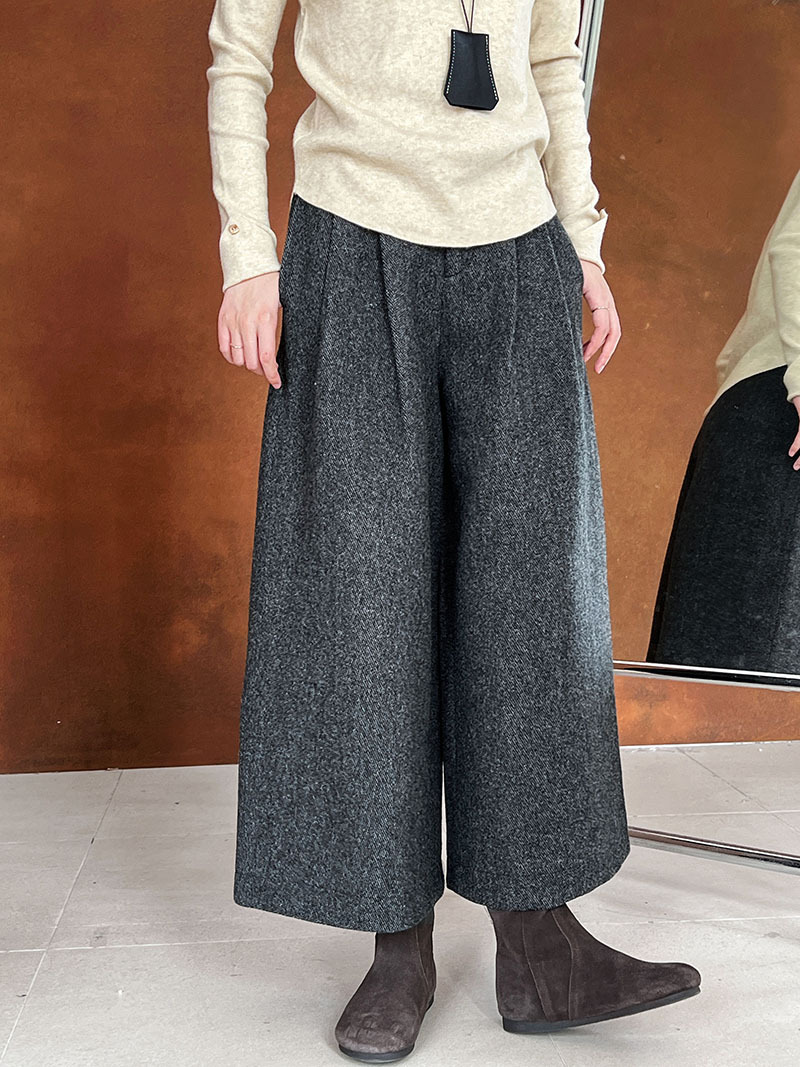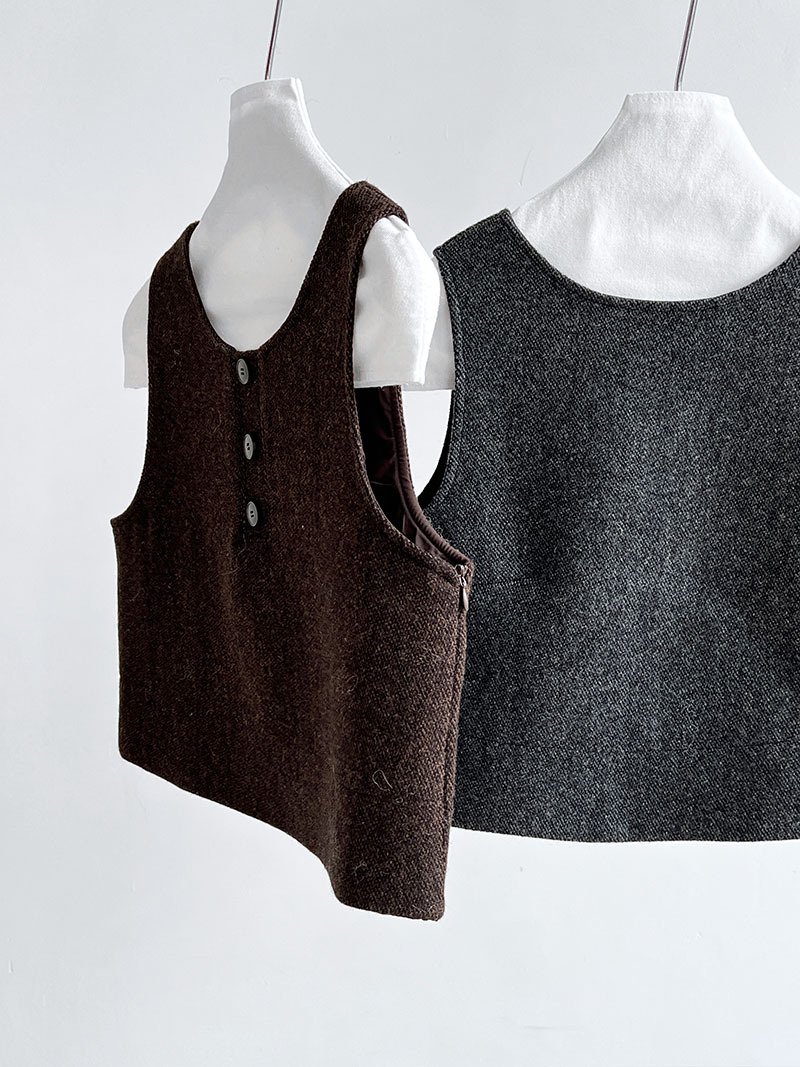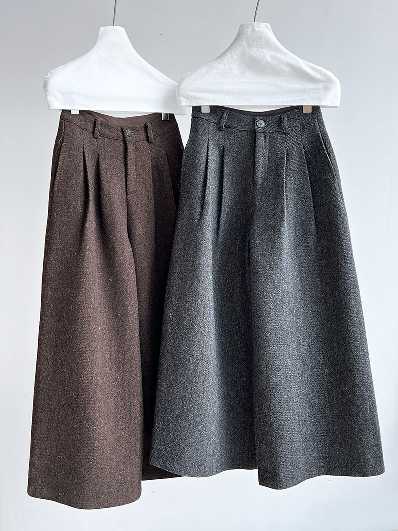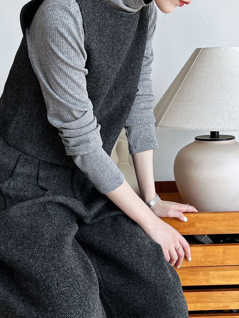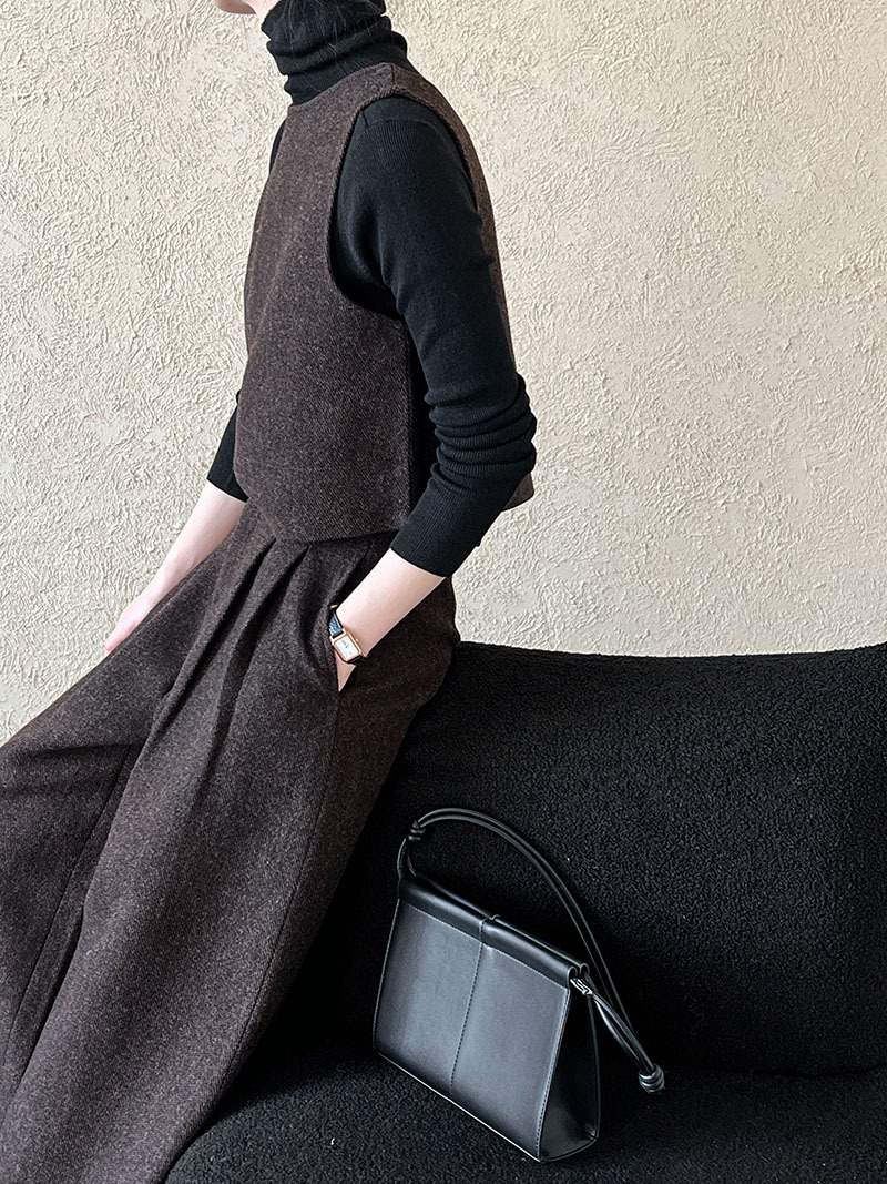 (48H出貨)羊毛呢高級感兩穿馬甲+闊腿西裝褲兩件式套裝-2色