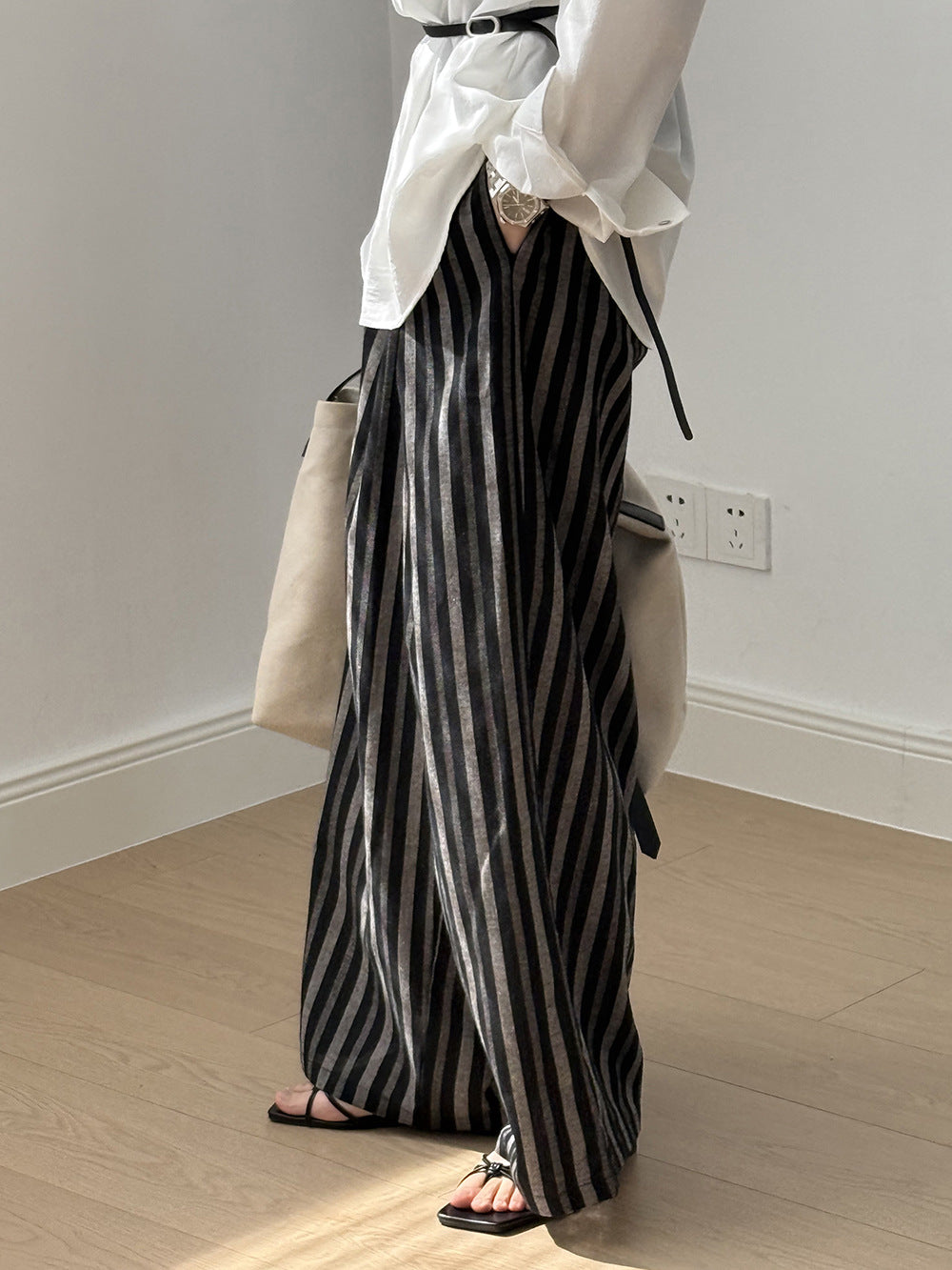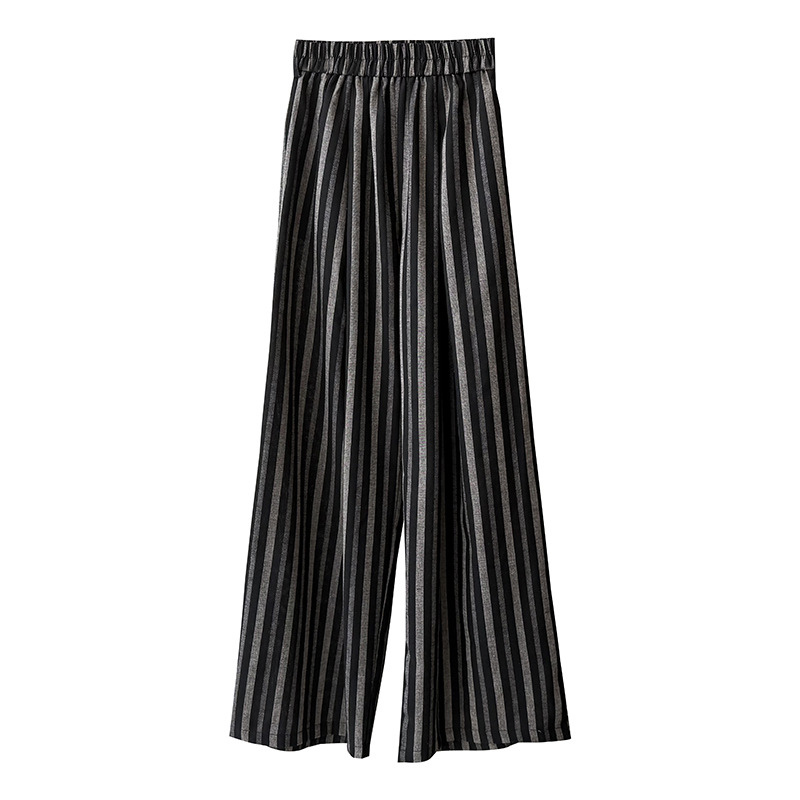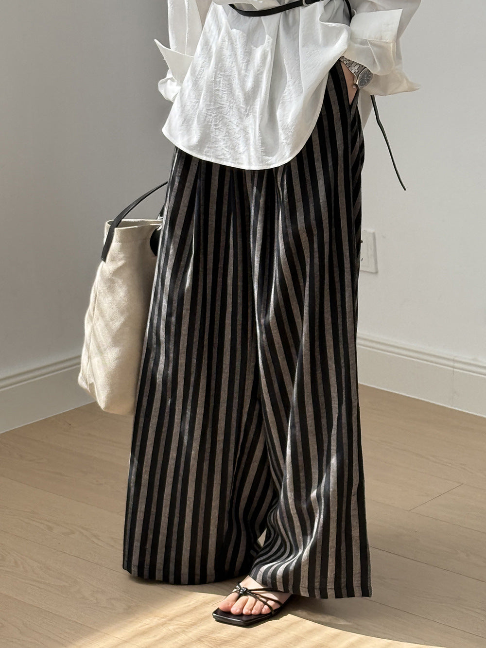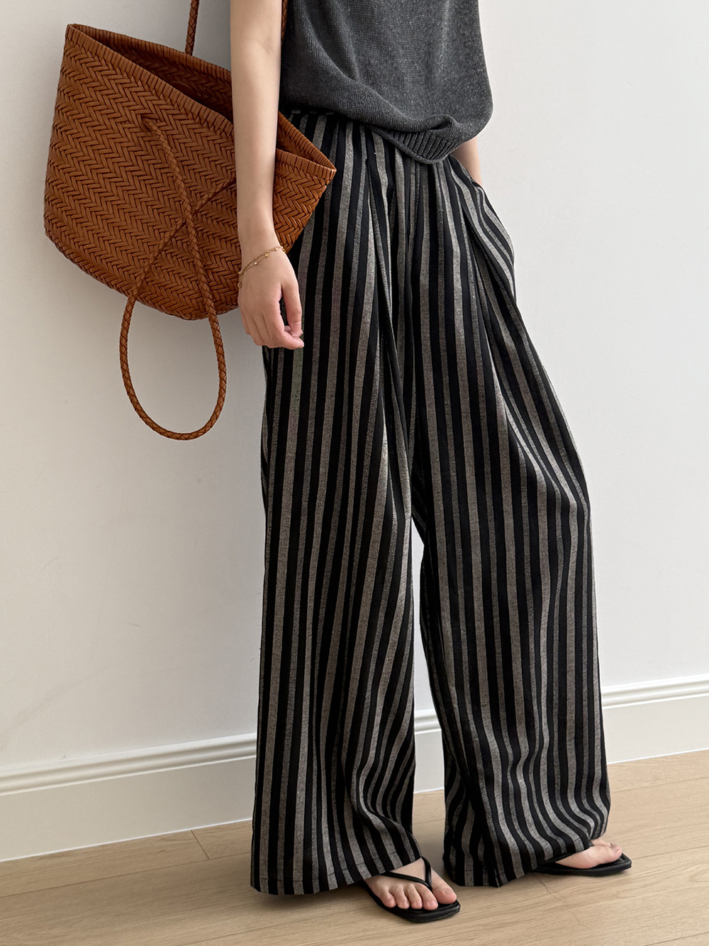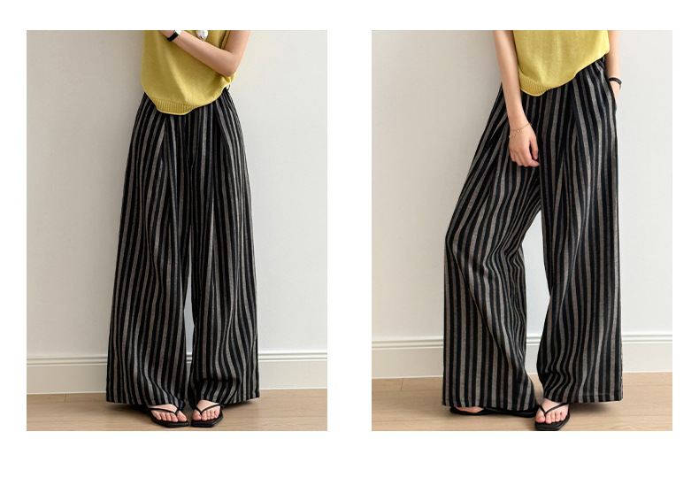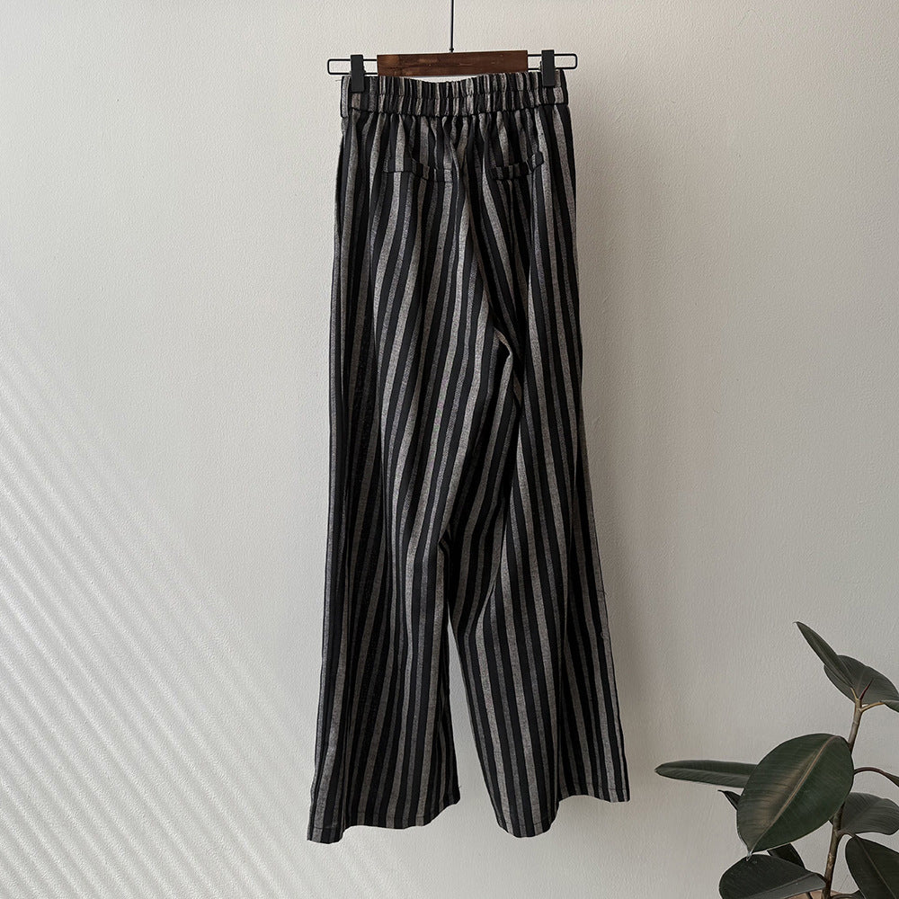 (48H出貨)美式復古寬鬆慵懶條紋拖地闊腿褲