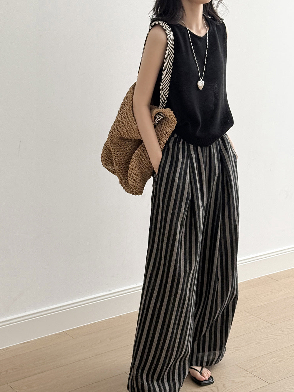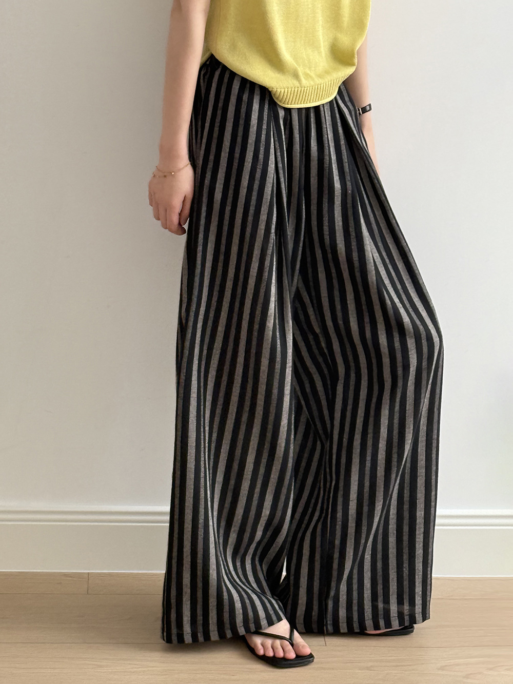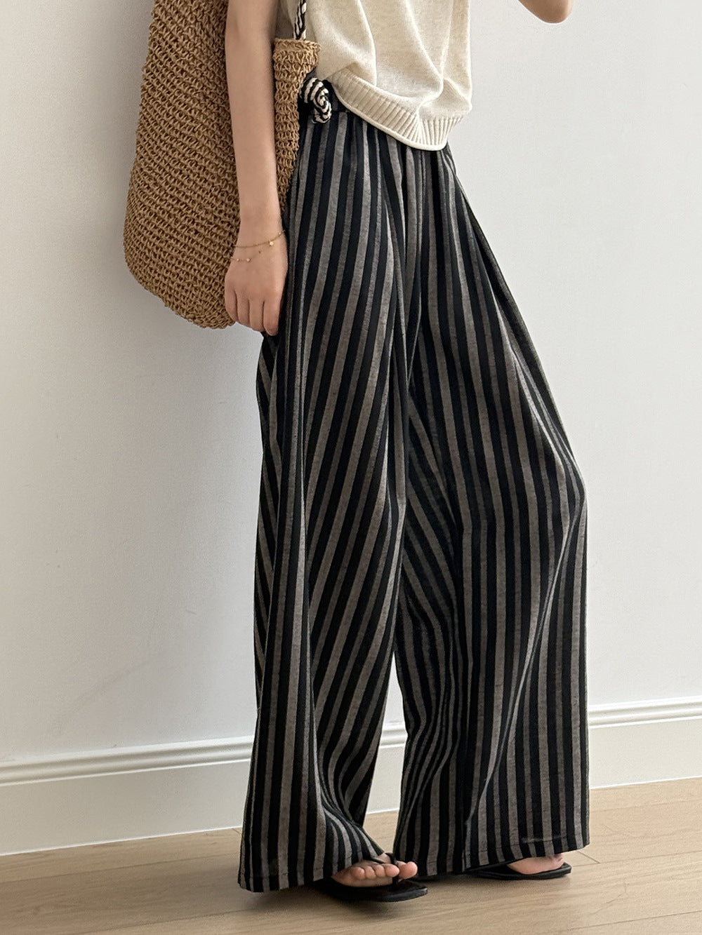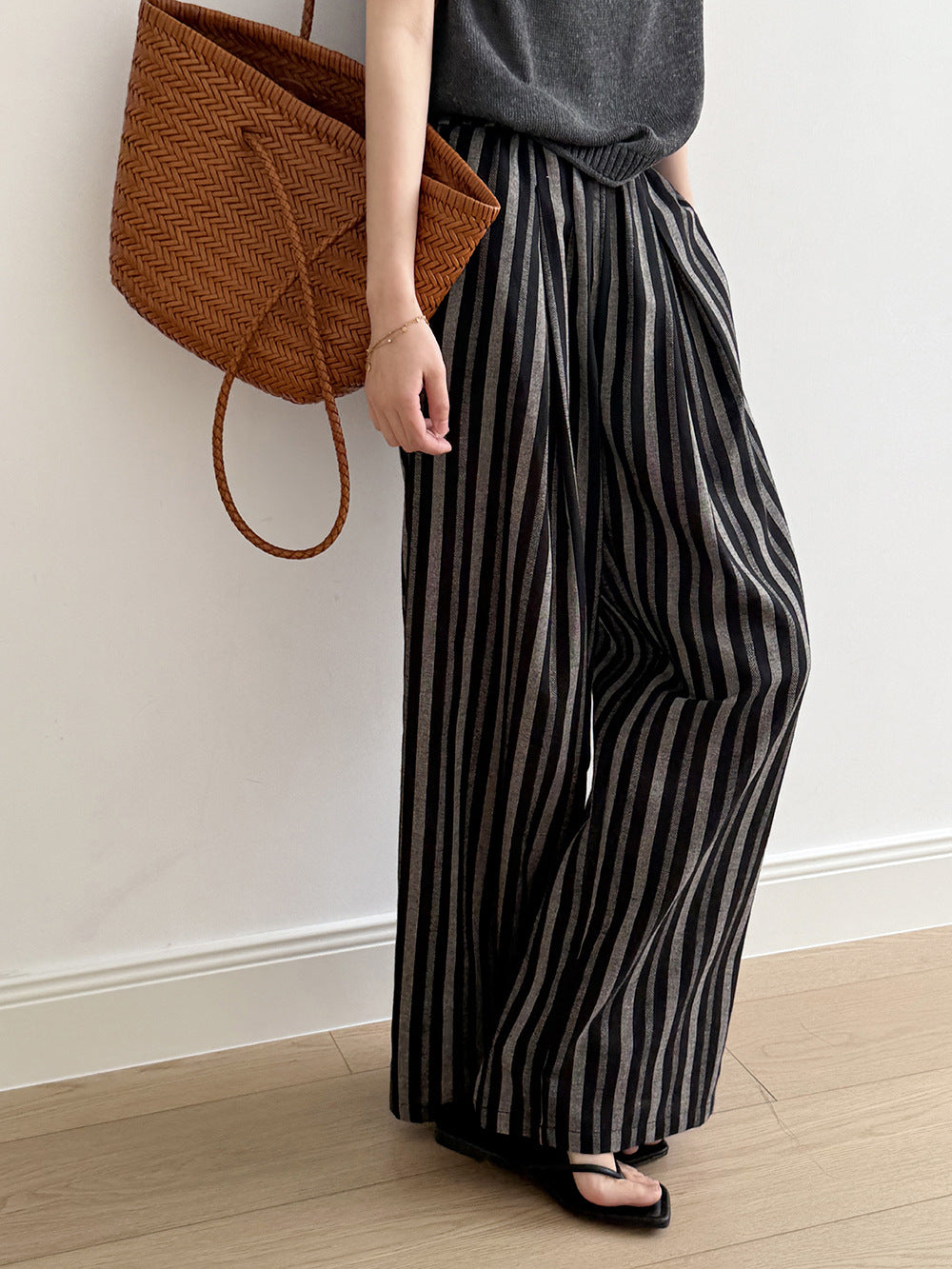 (48H出貨)美式復古寬鬆慵懶條紋拖地闊腿褲