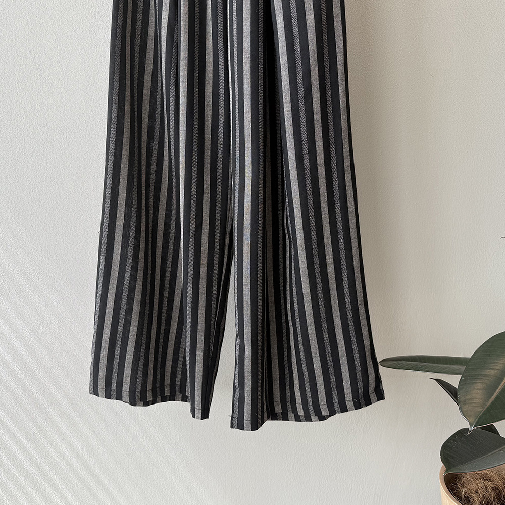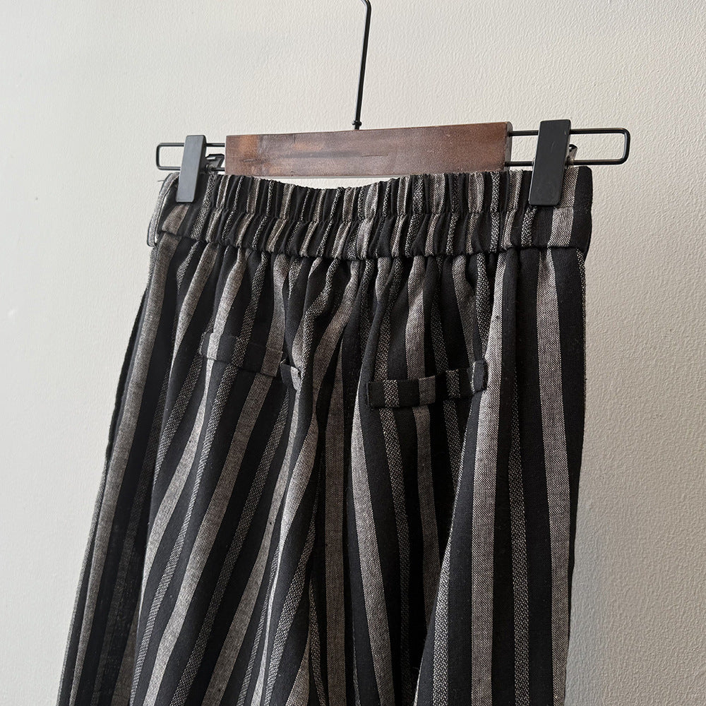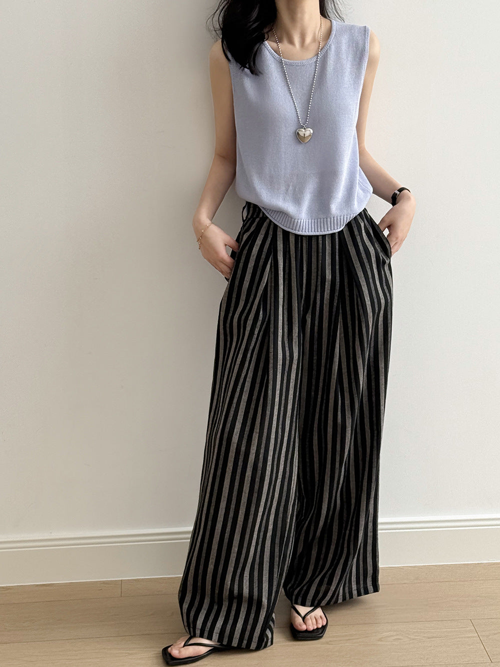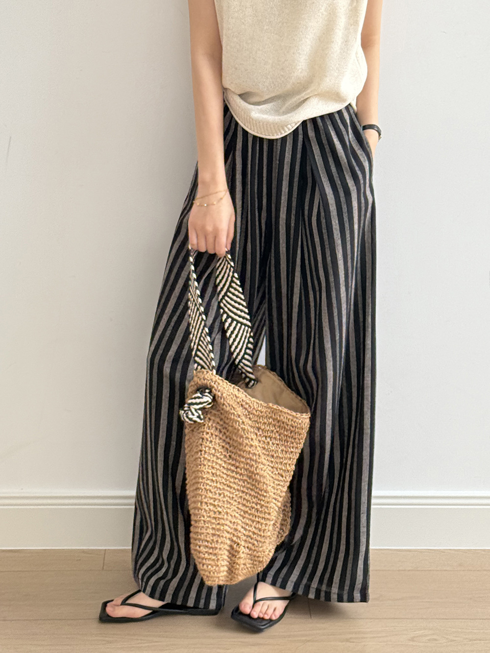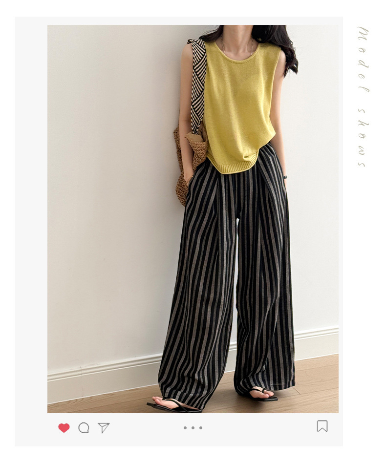 (48H出貨)美式復古寬鬆慵懶條紋拖地闊腿褲