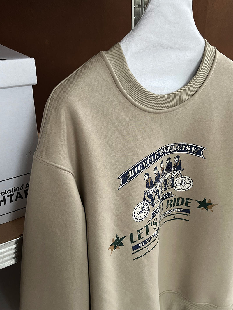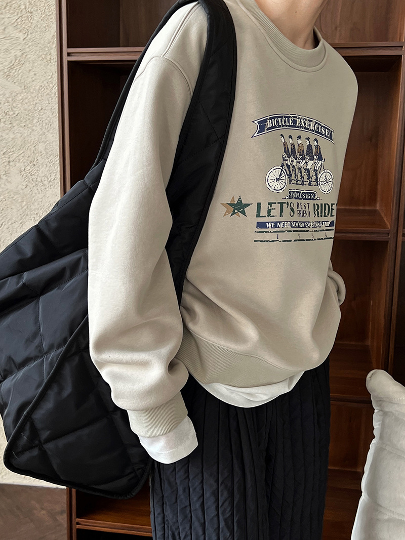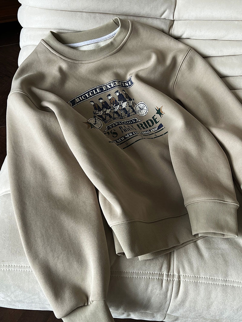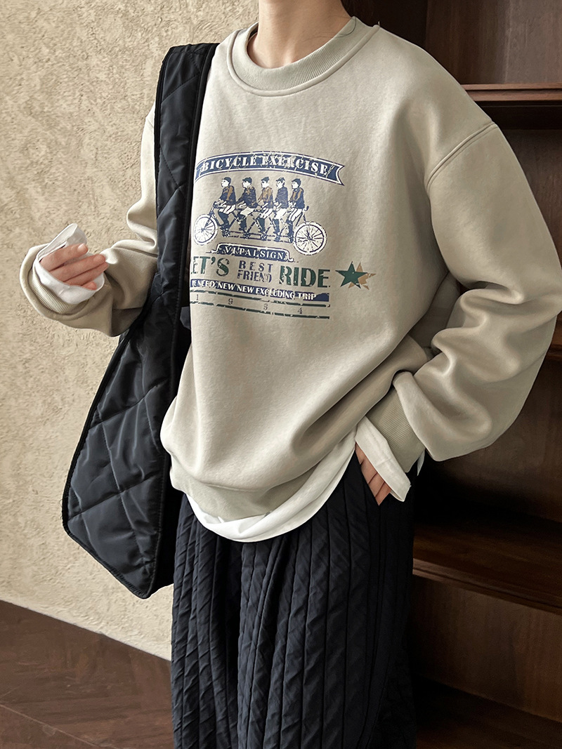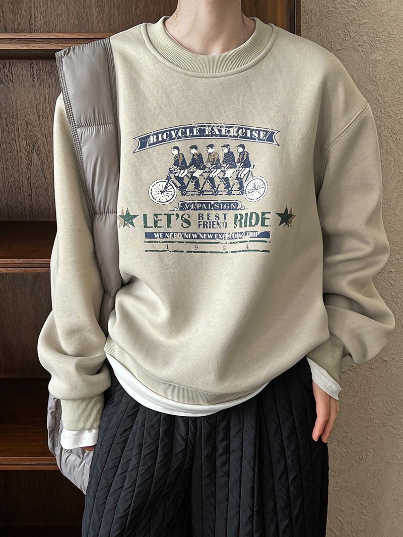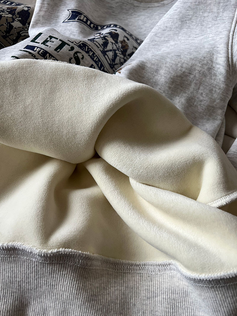 (48H出貨)美式減齡圓領加絨加厚印花衛衣-2色