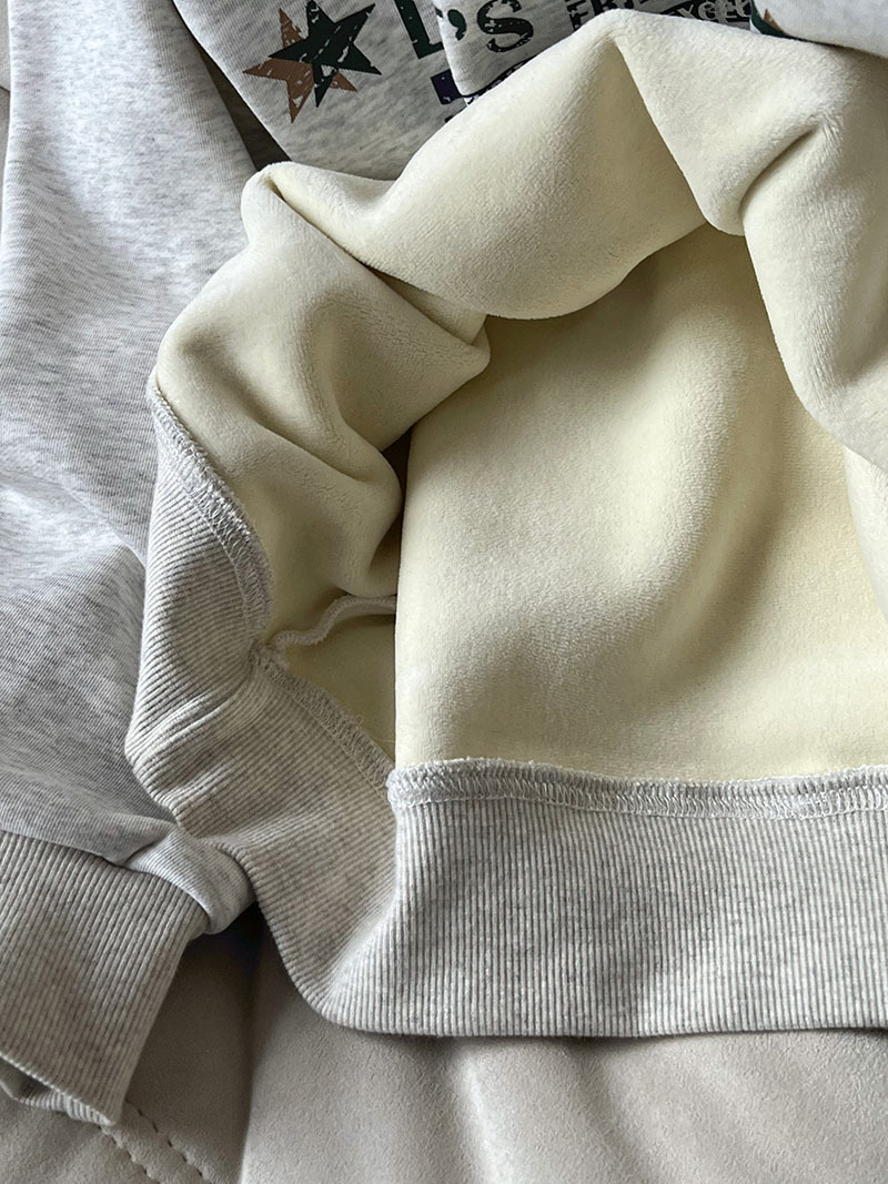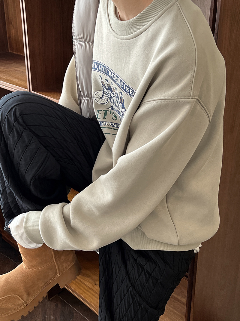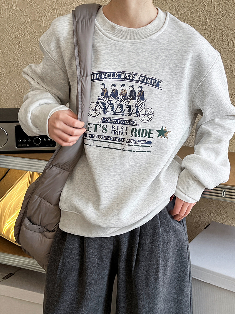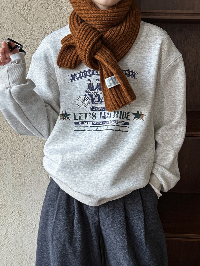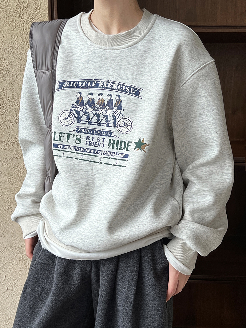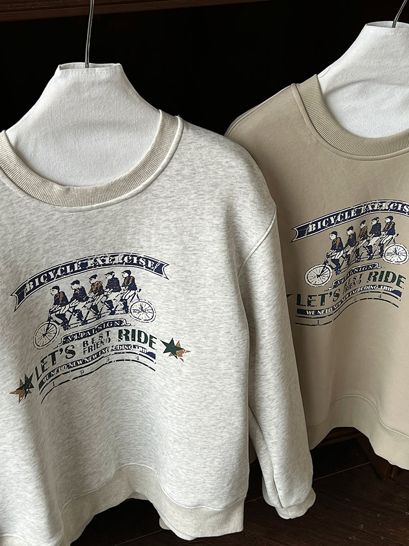 (48H出貨)美式減齡圓領加絨加厚印花衛衣-2色