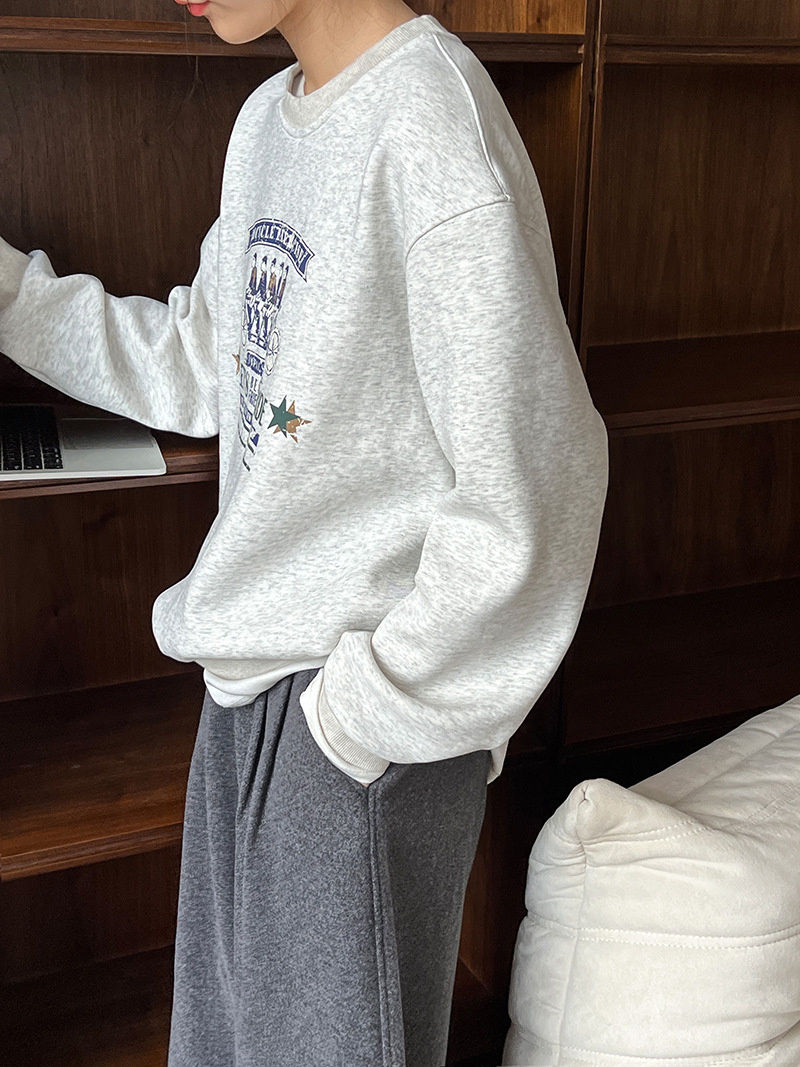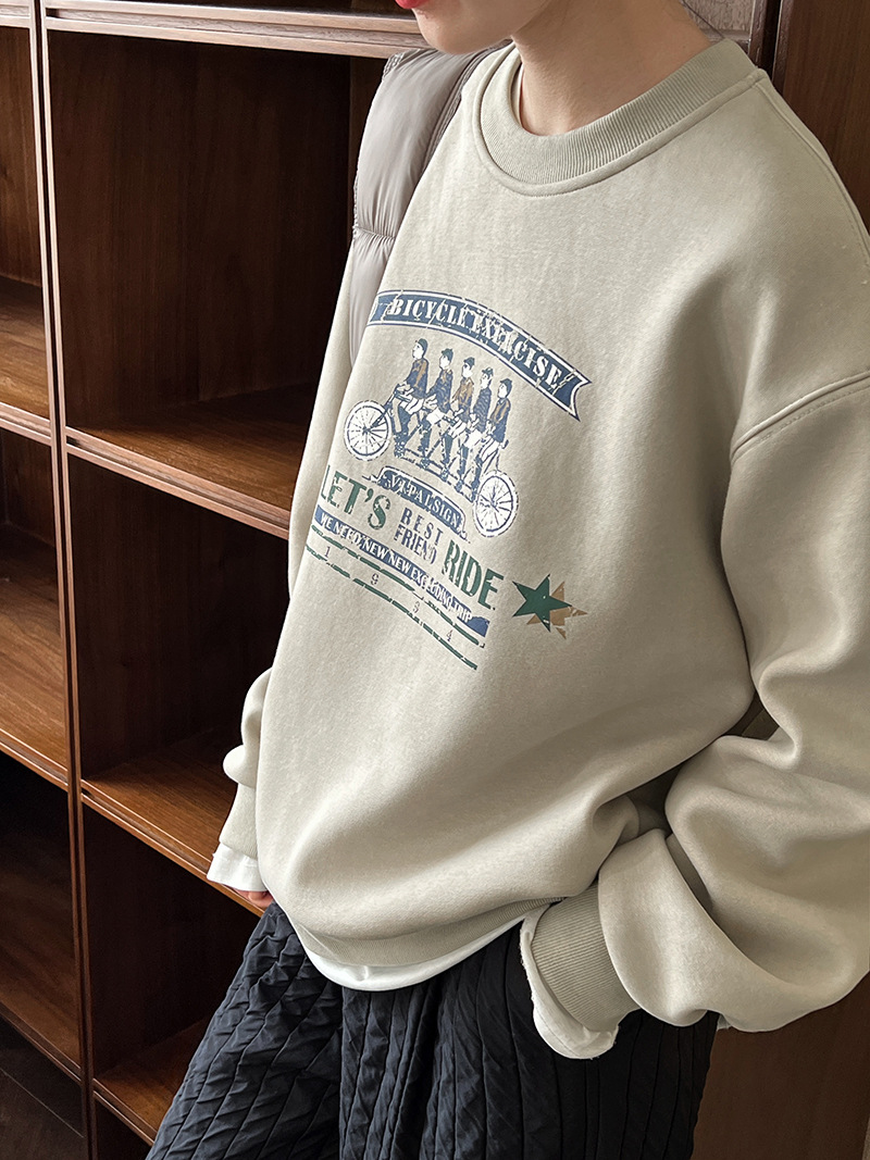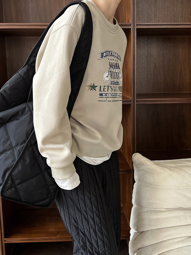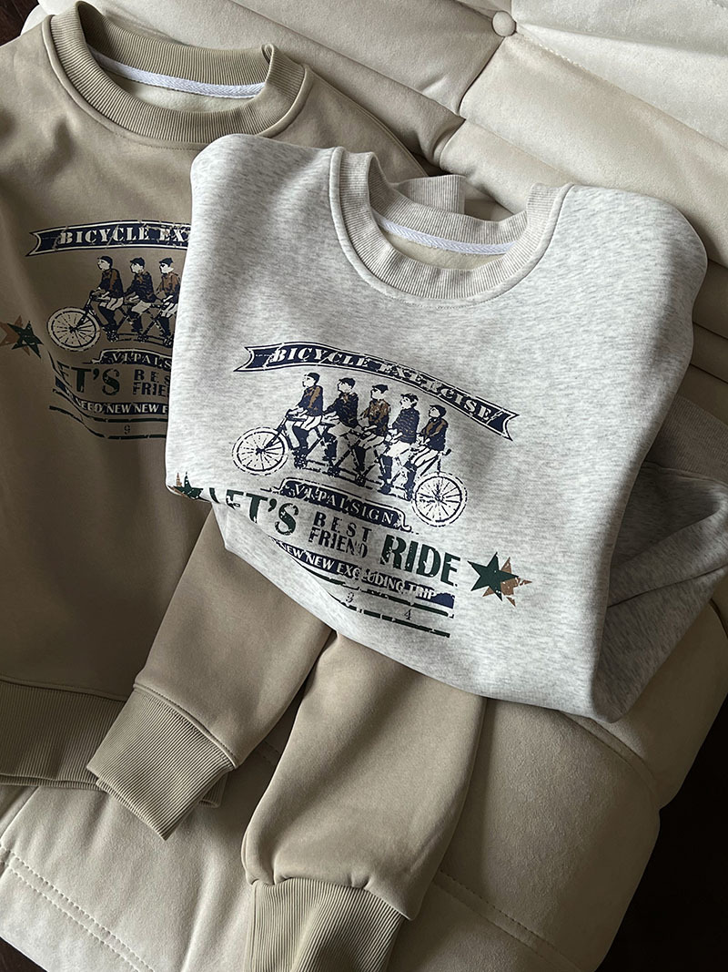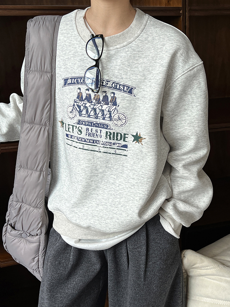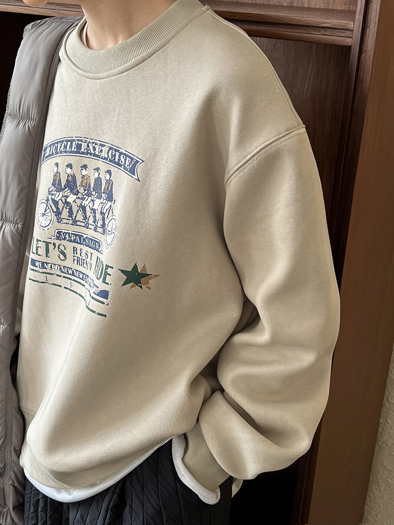 (48H出貨)美式減齡圓領加絨加厚印花衛衣-2色