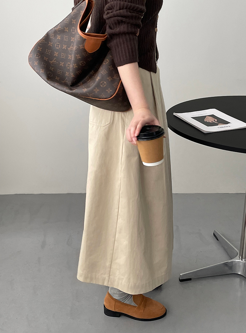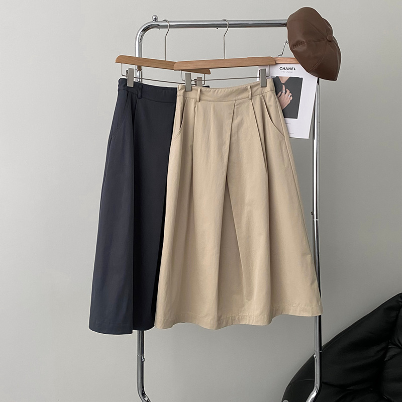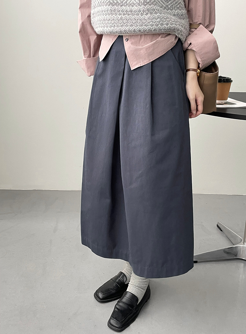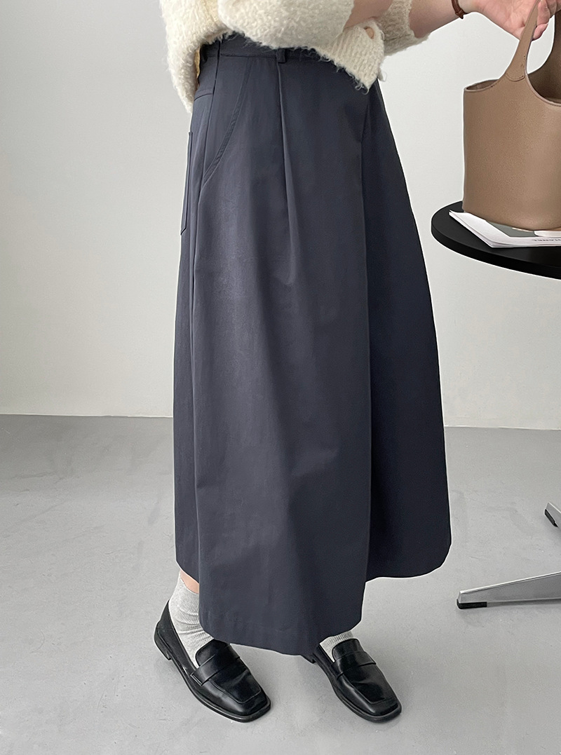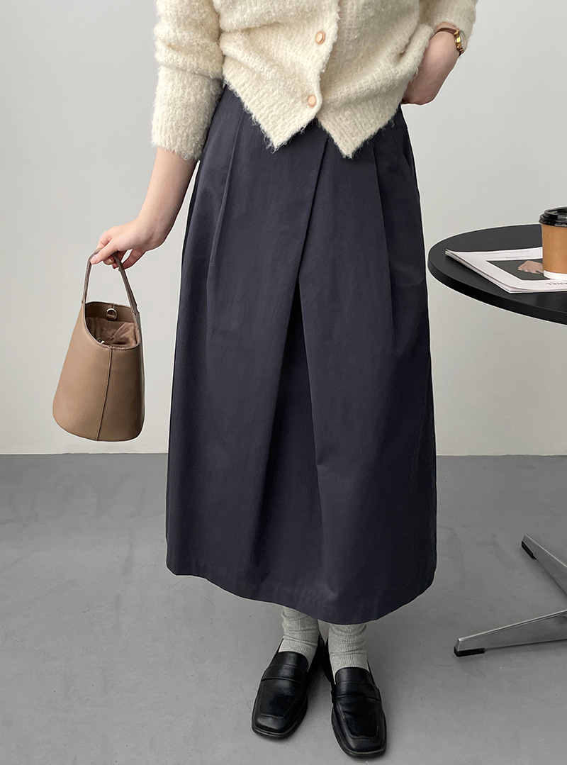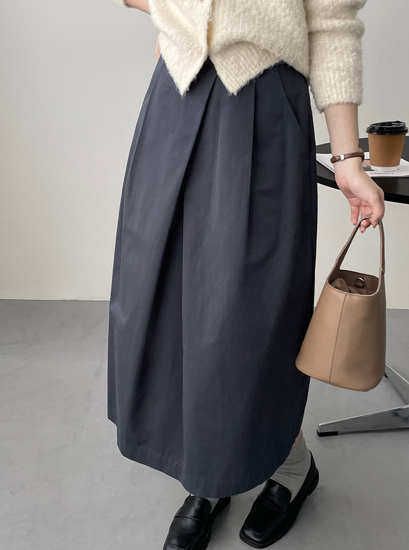 (48H出貨)設計感不規則壓褶半身裙-2色