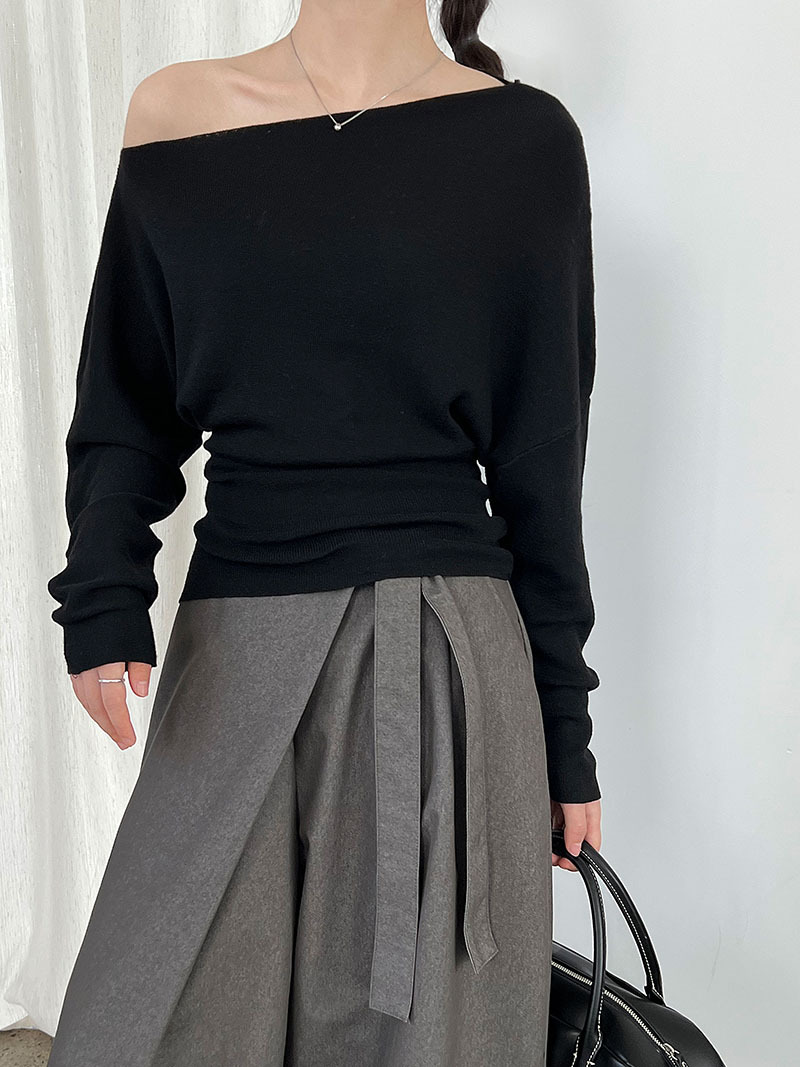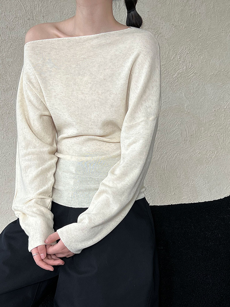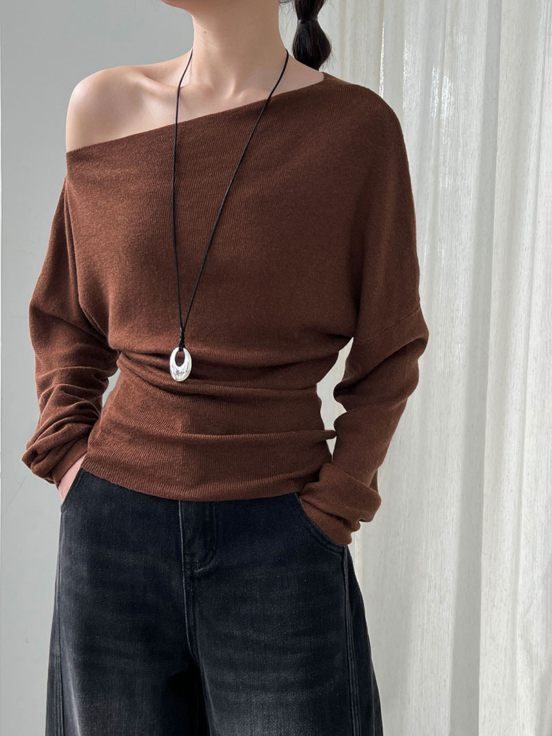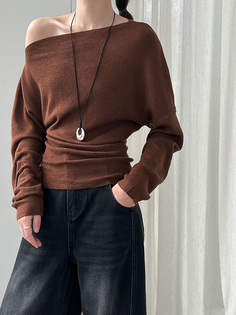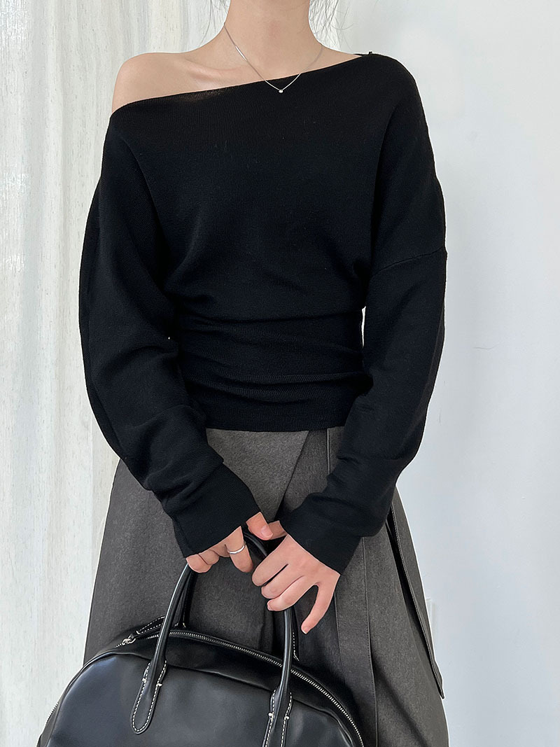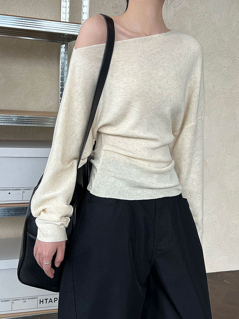 (48H出貨)設計感收腰修身露肩針織衫-6色