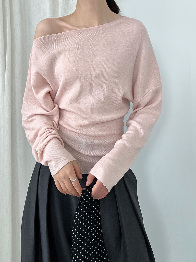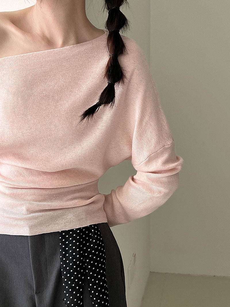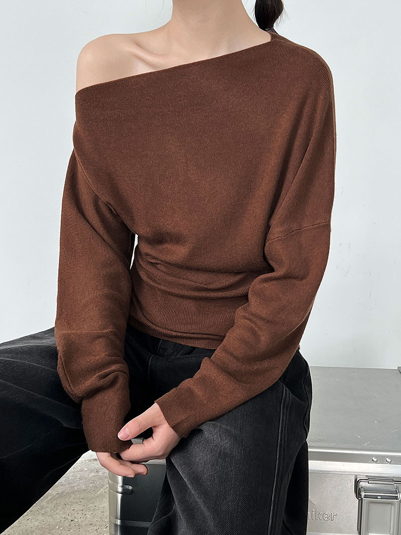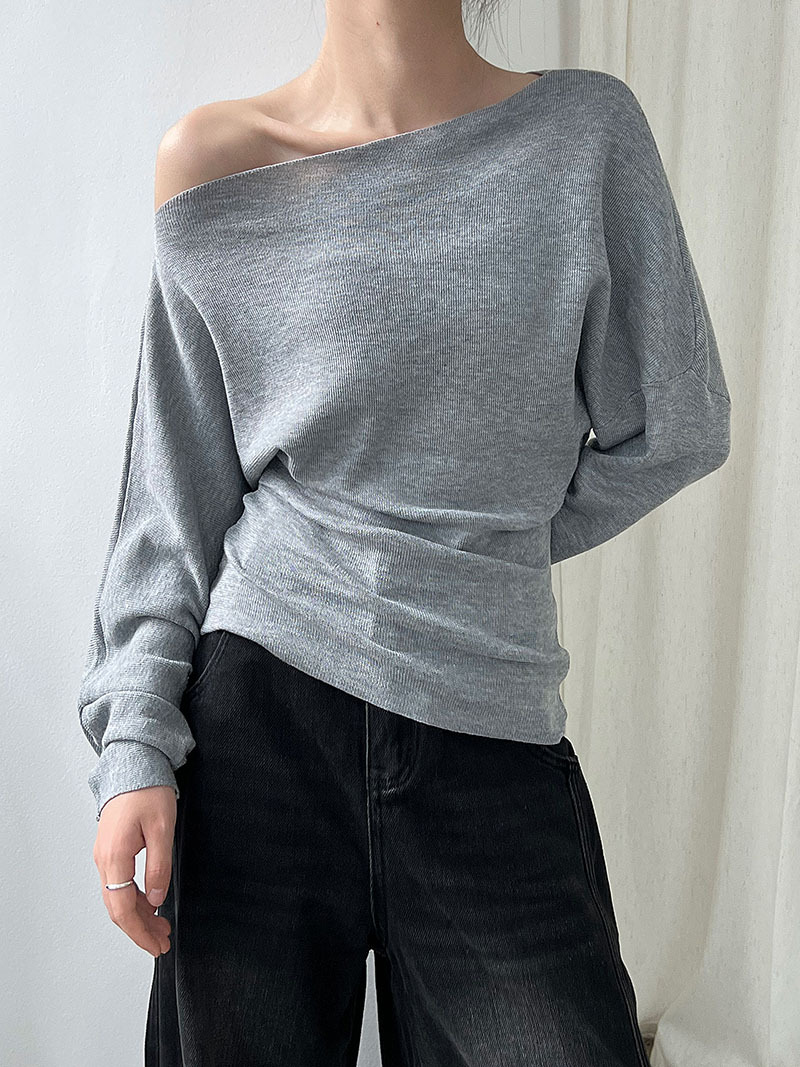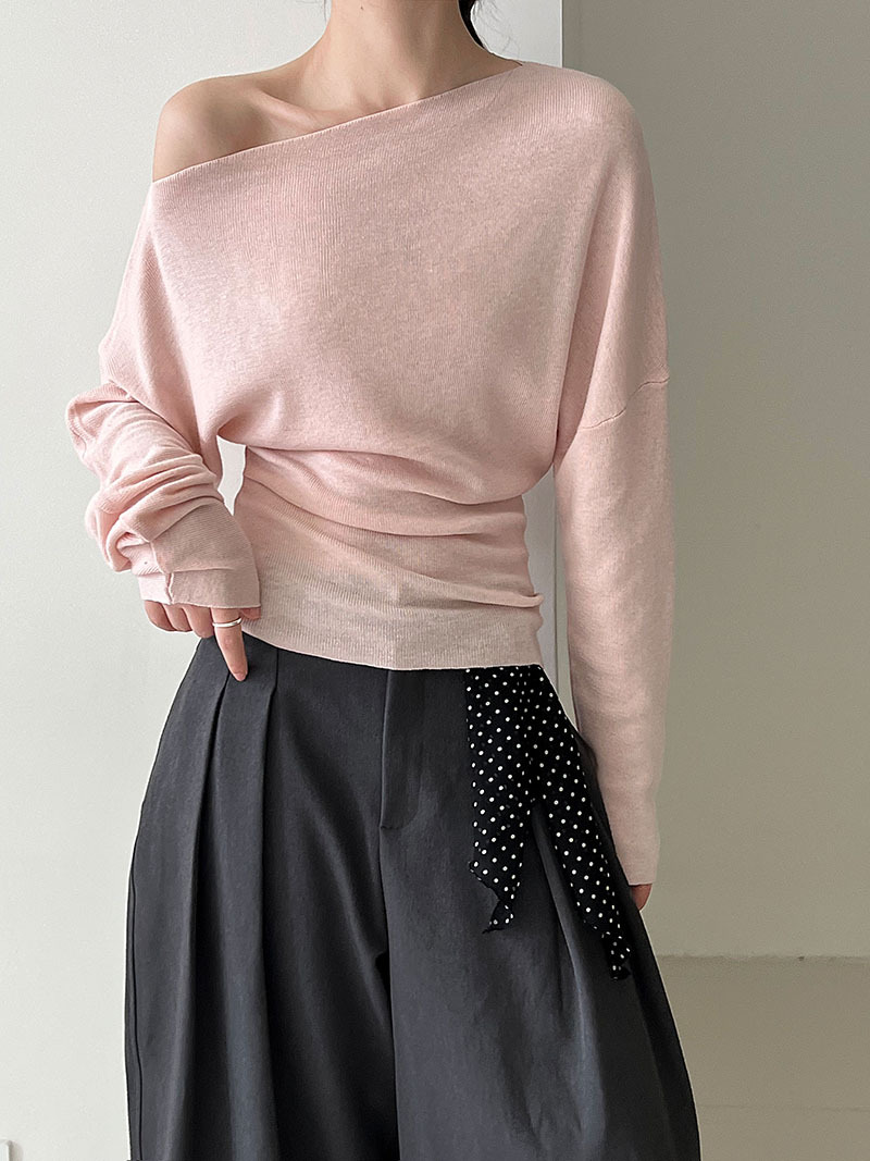 (48H出貨)設計感收腰修身露肩針織衫-6色