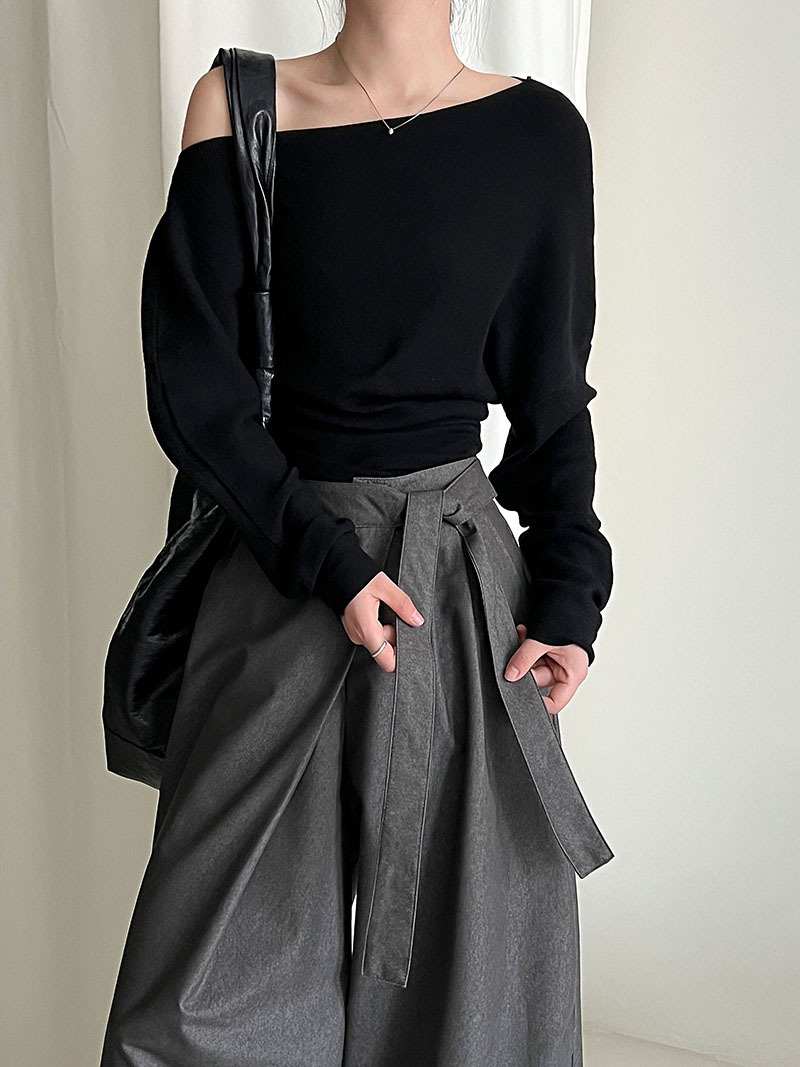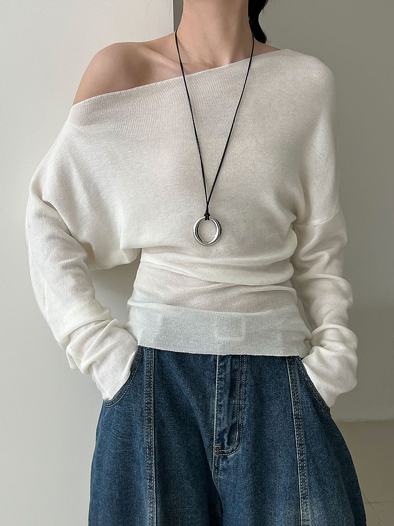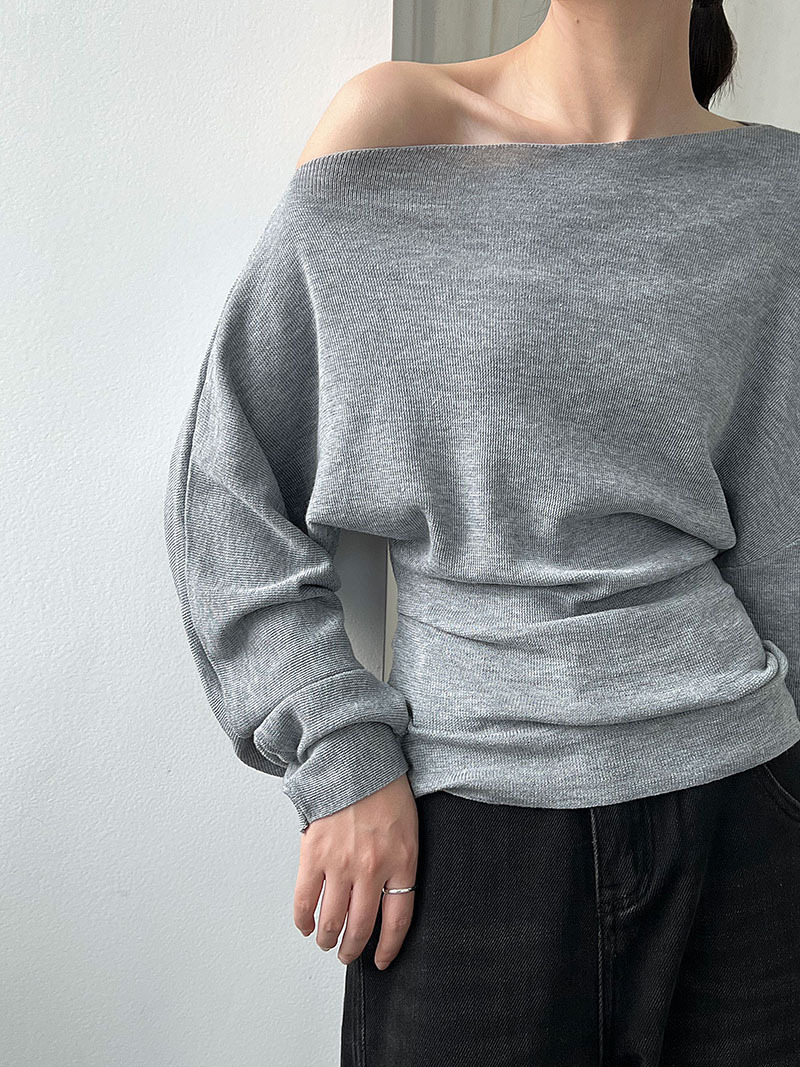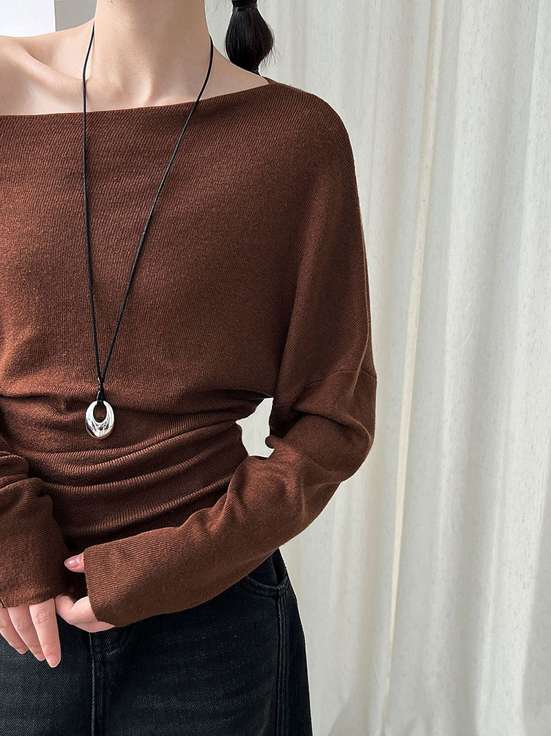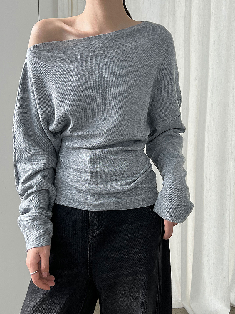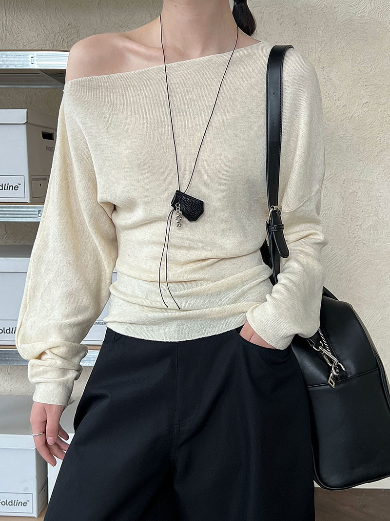 (48H出貨)設計感收腰修身露肩針織衫-6色