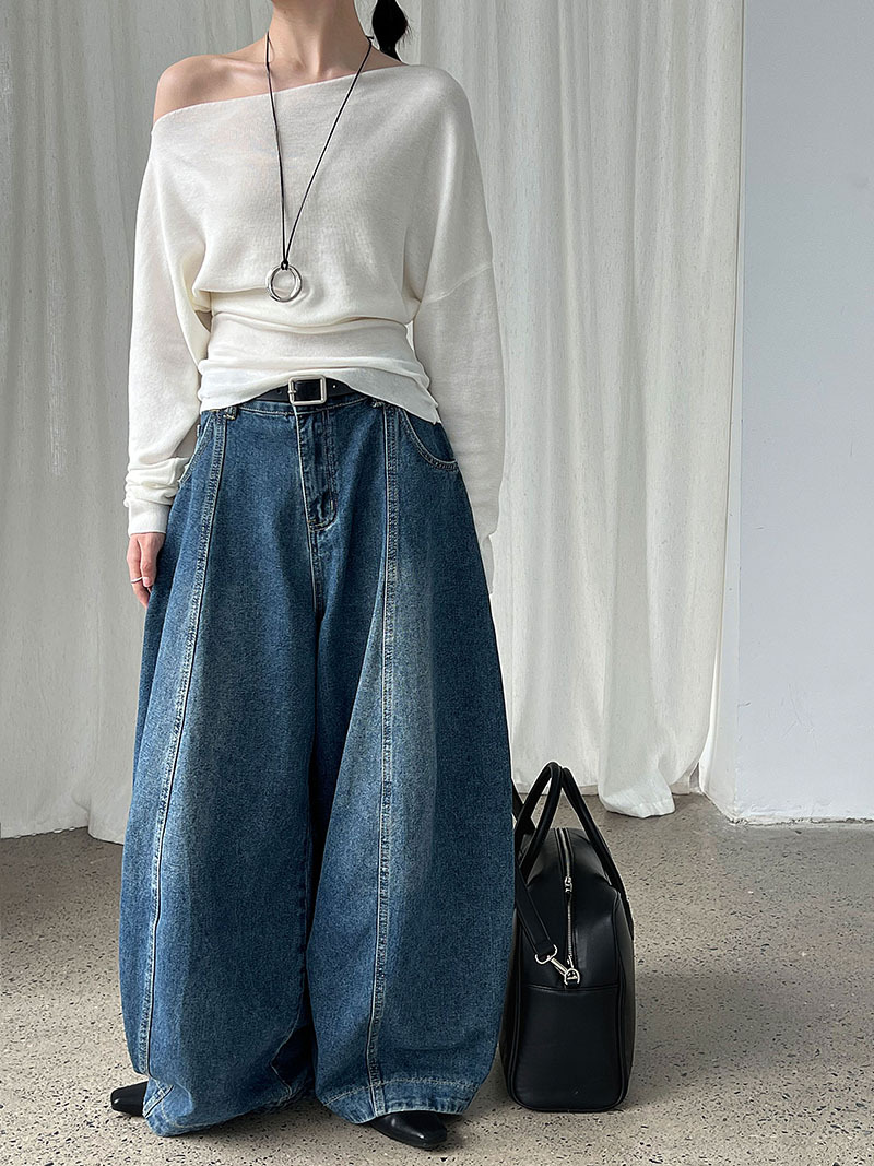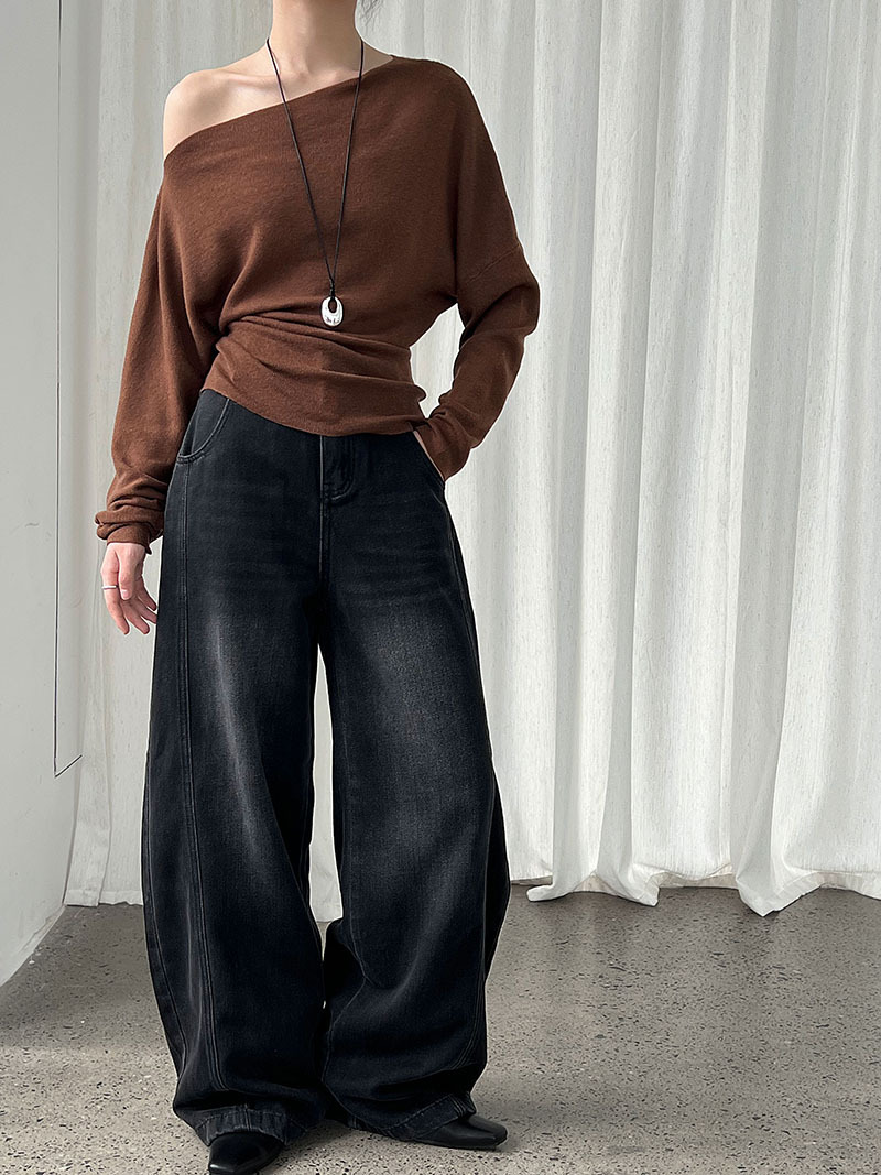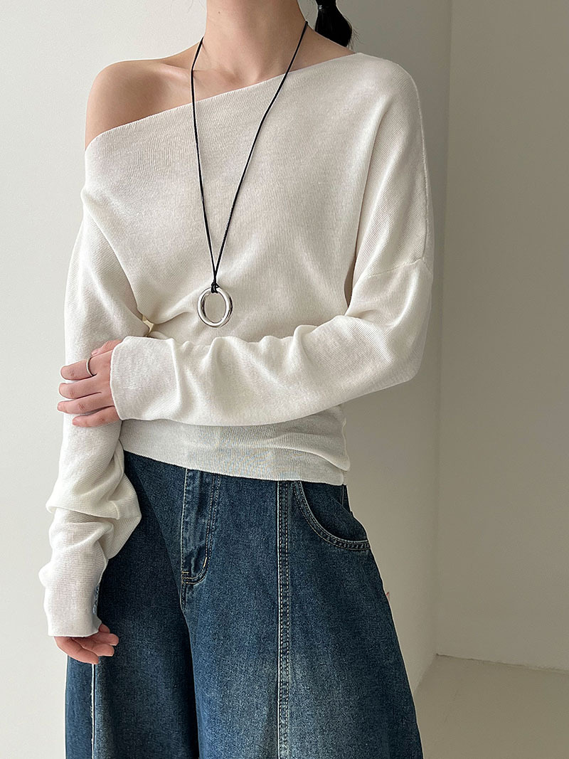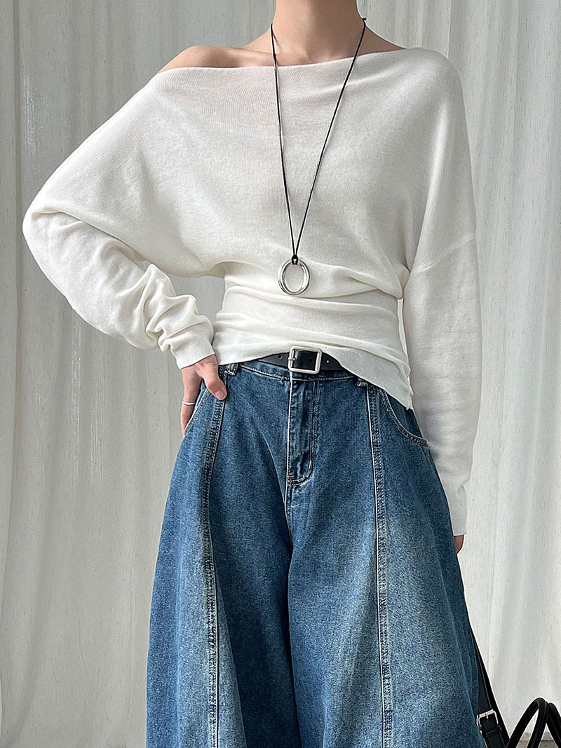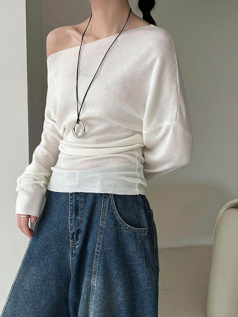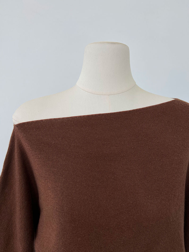 (48H出貨)設計感收腰修身露肩針織衫-6色