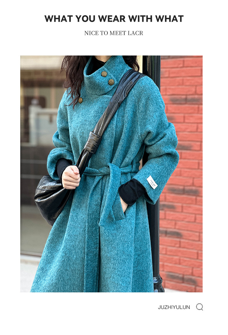 (48H出貨)設計感羊毛氣質名媛風繫帶長款大衣
