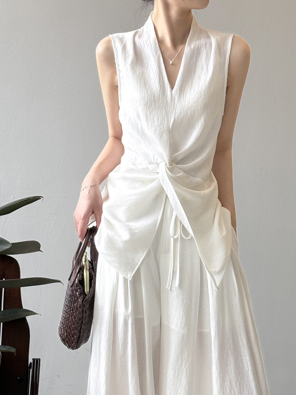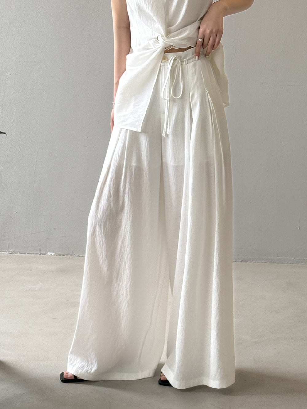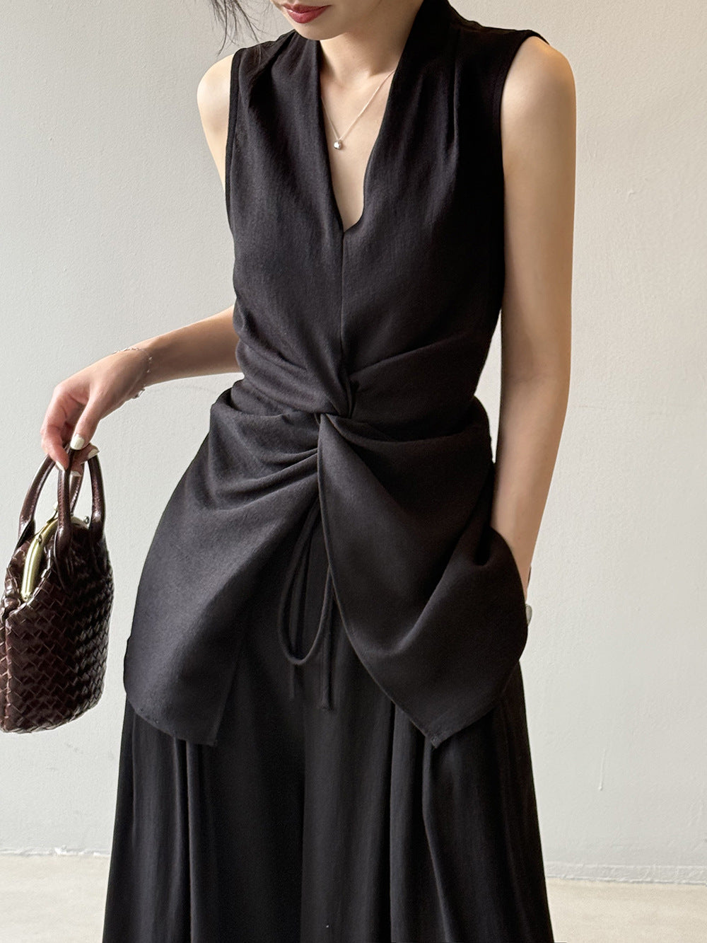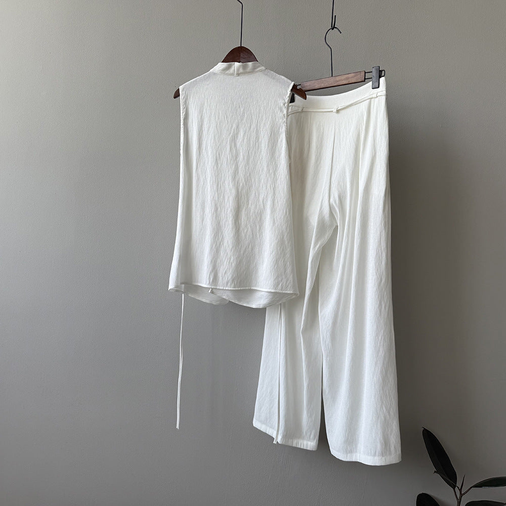 (48H出貨)質感設計扭結無袖襯衫+闊腿長褲-兩件式套裝-3色