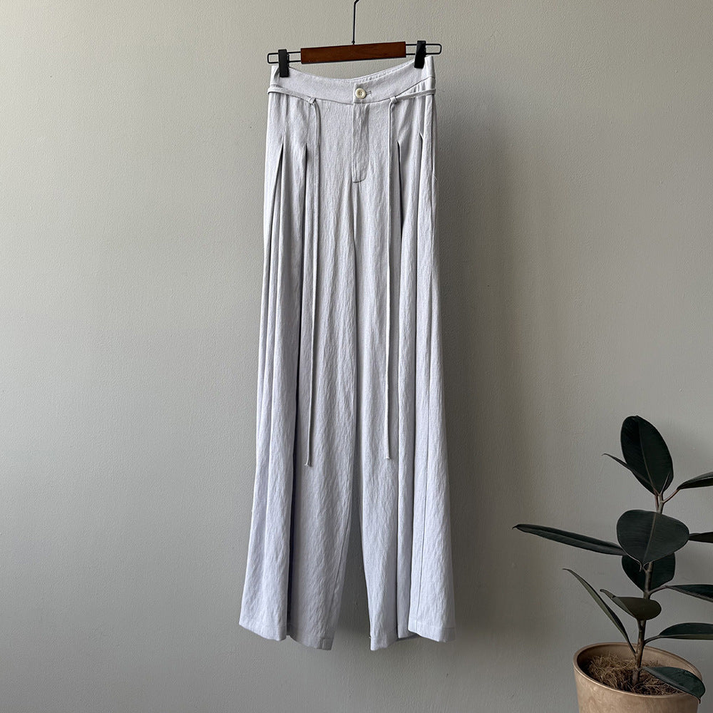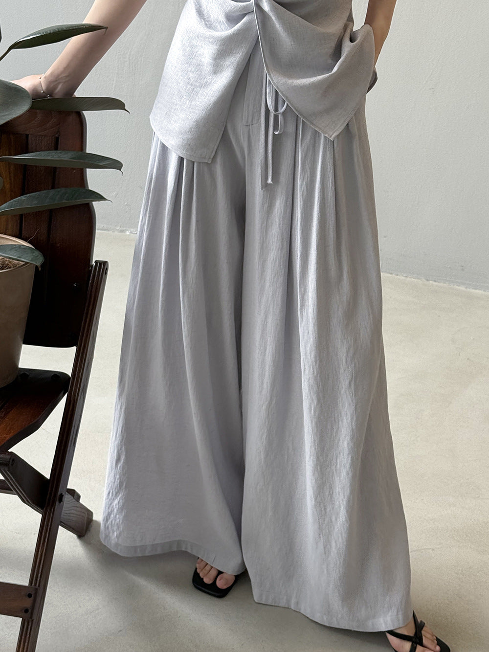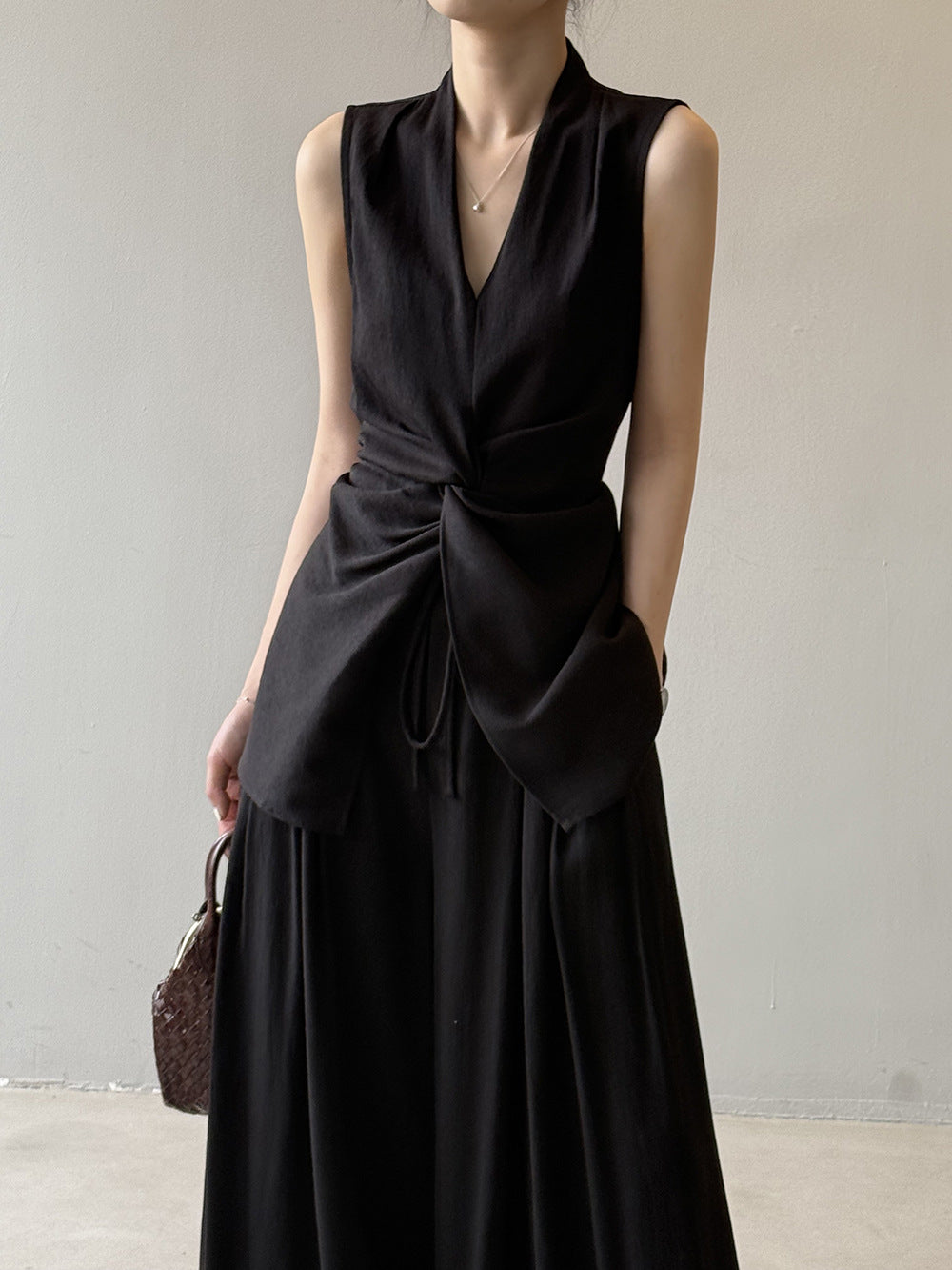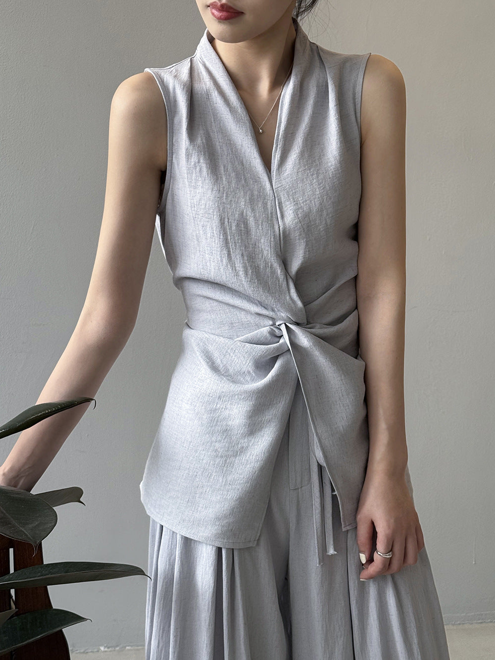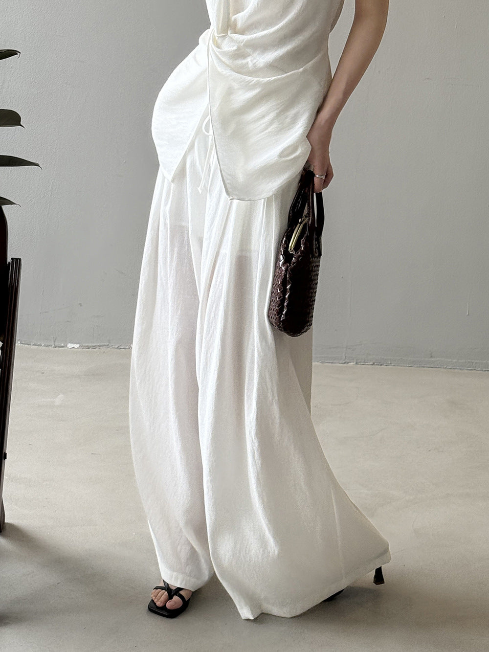 (48H出貨)質感設計扭結無袖襯衫+闊腿長褲-兩件式套裝-3色