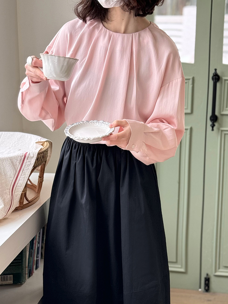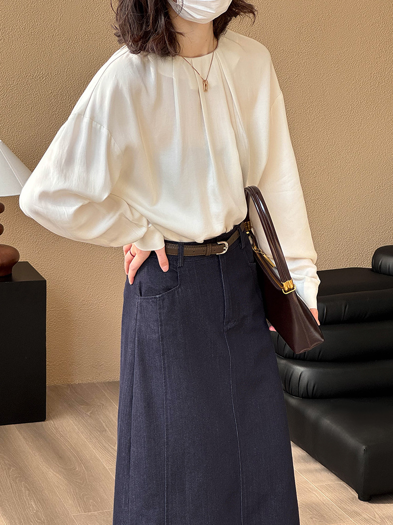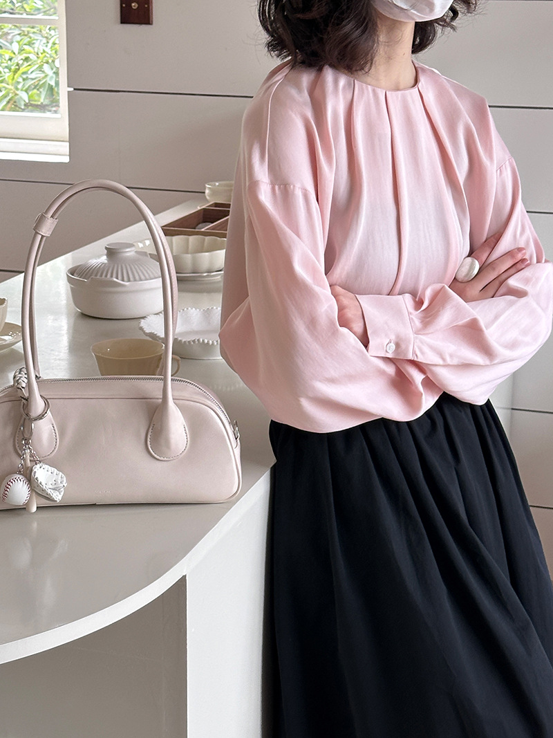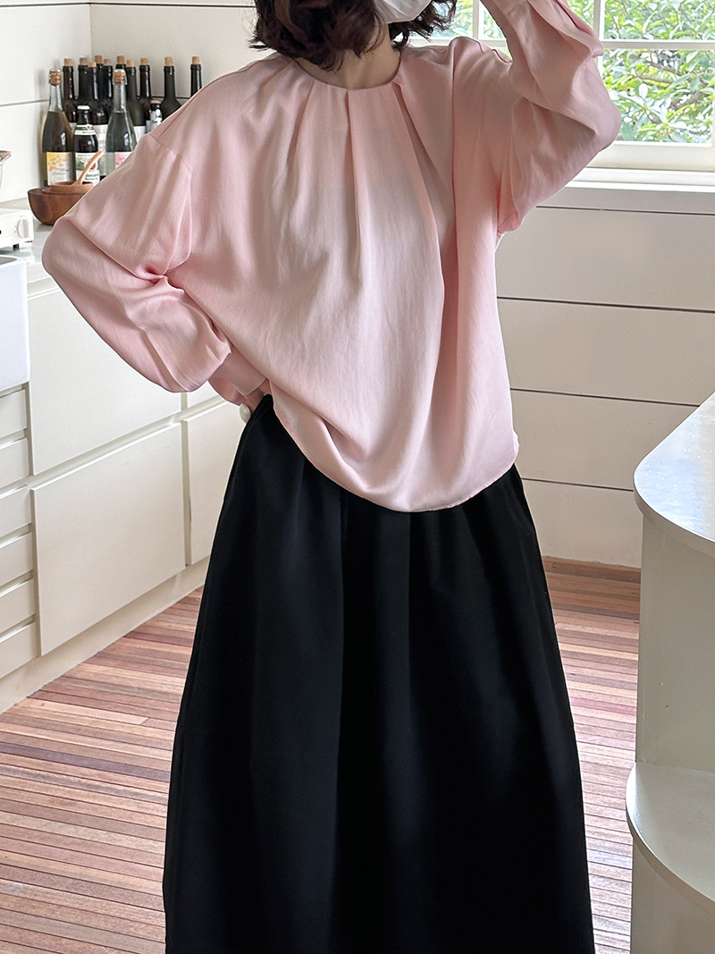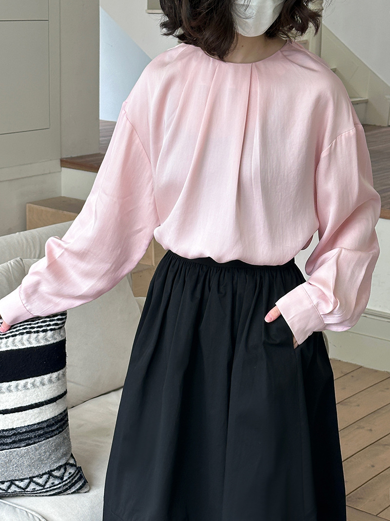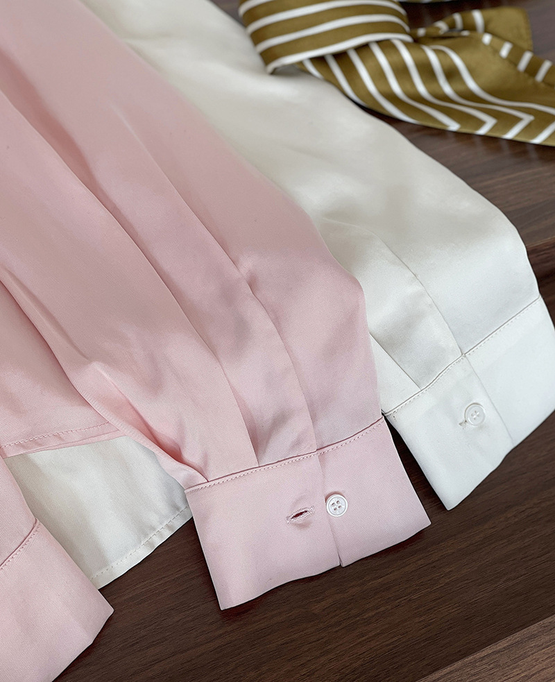 (48H出貨)韓版氣質長袖天絲圓領襯衣-2色