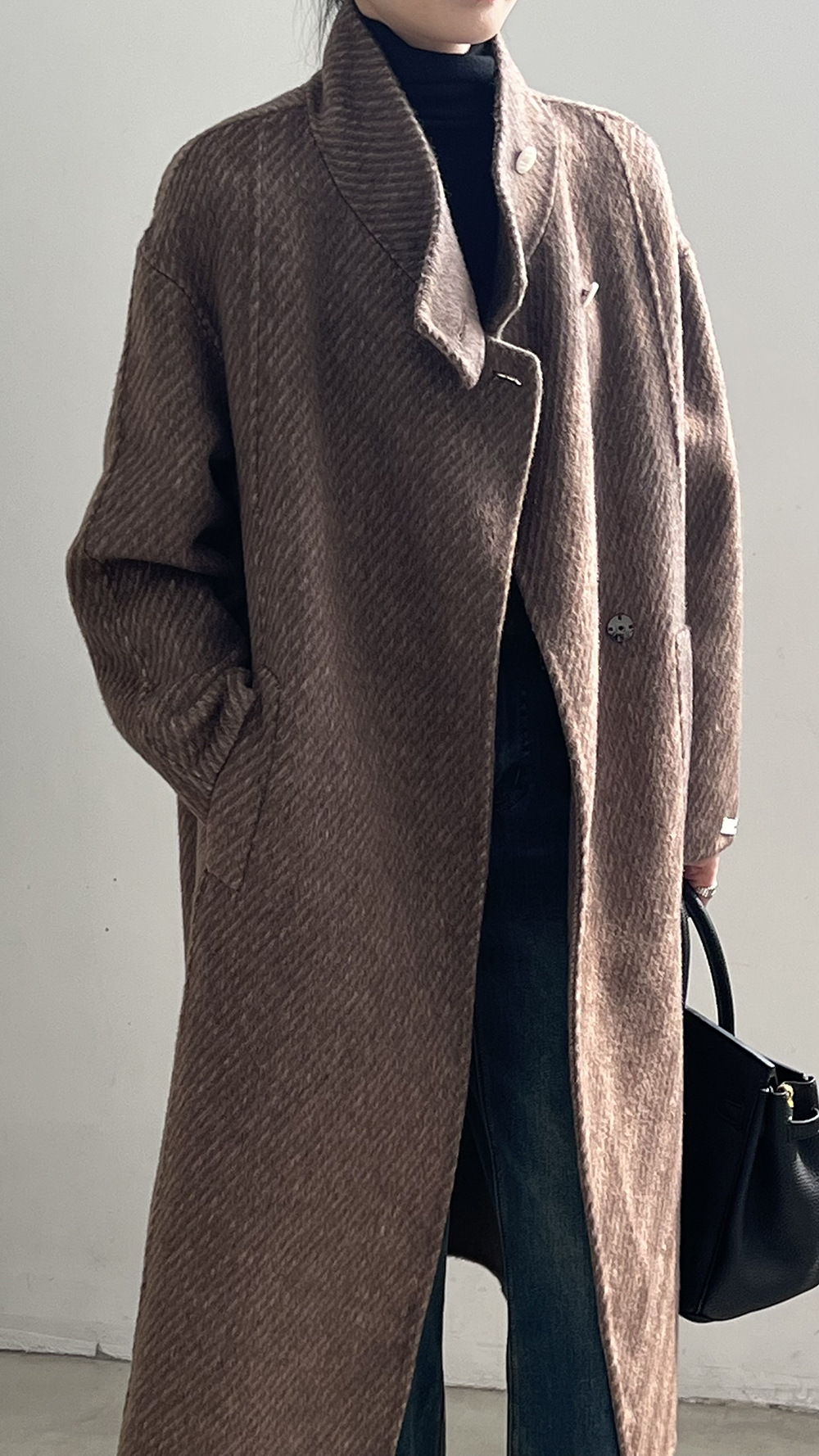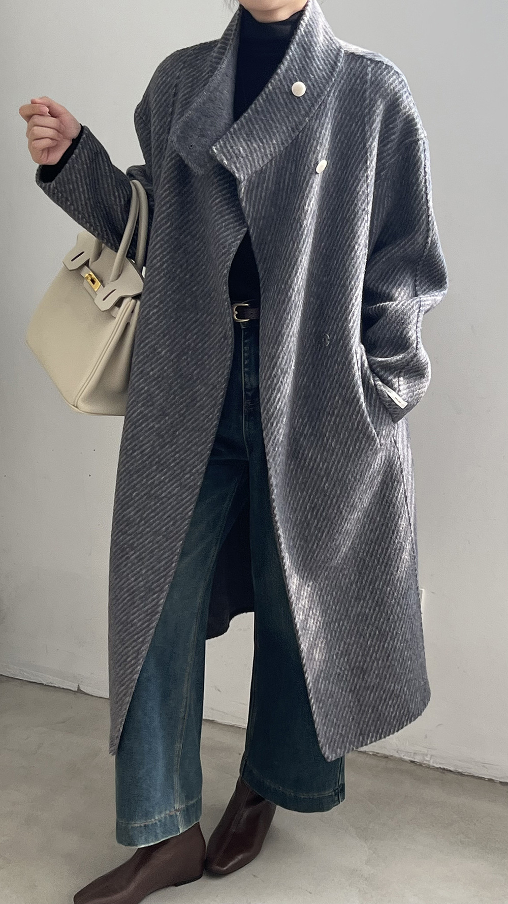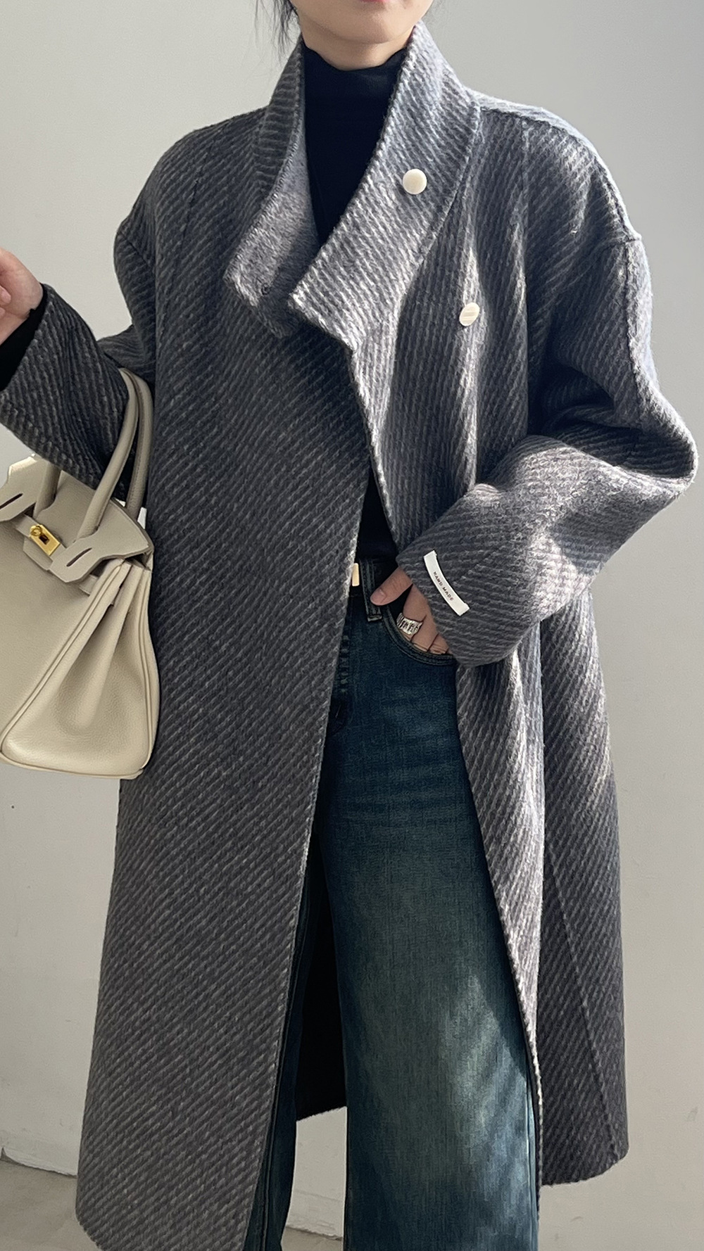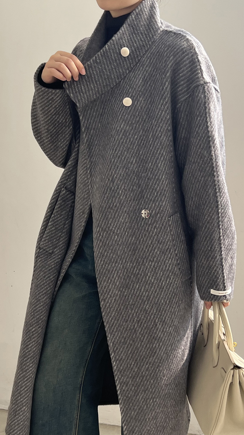 (48H出貨)高級厚版斜紋輪廓雙面混羊毛大衣-2色