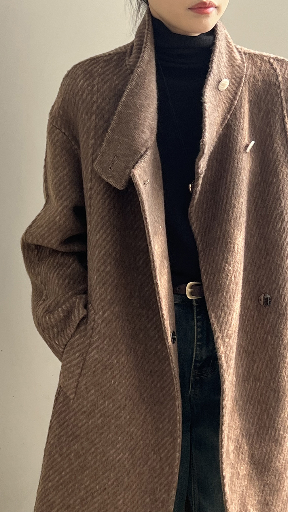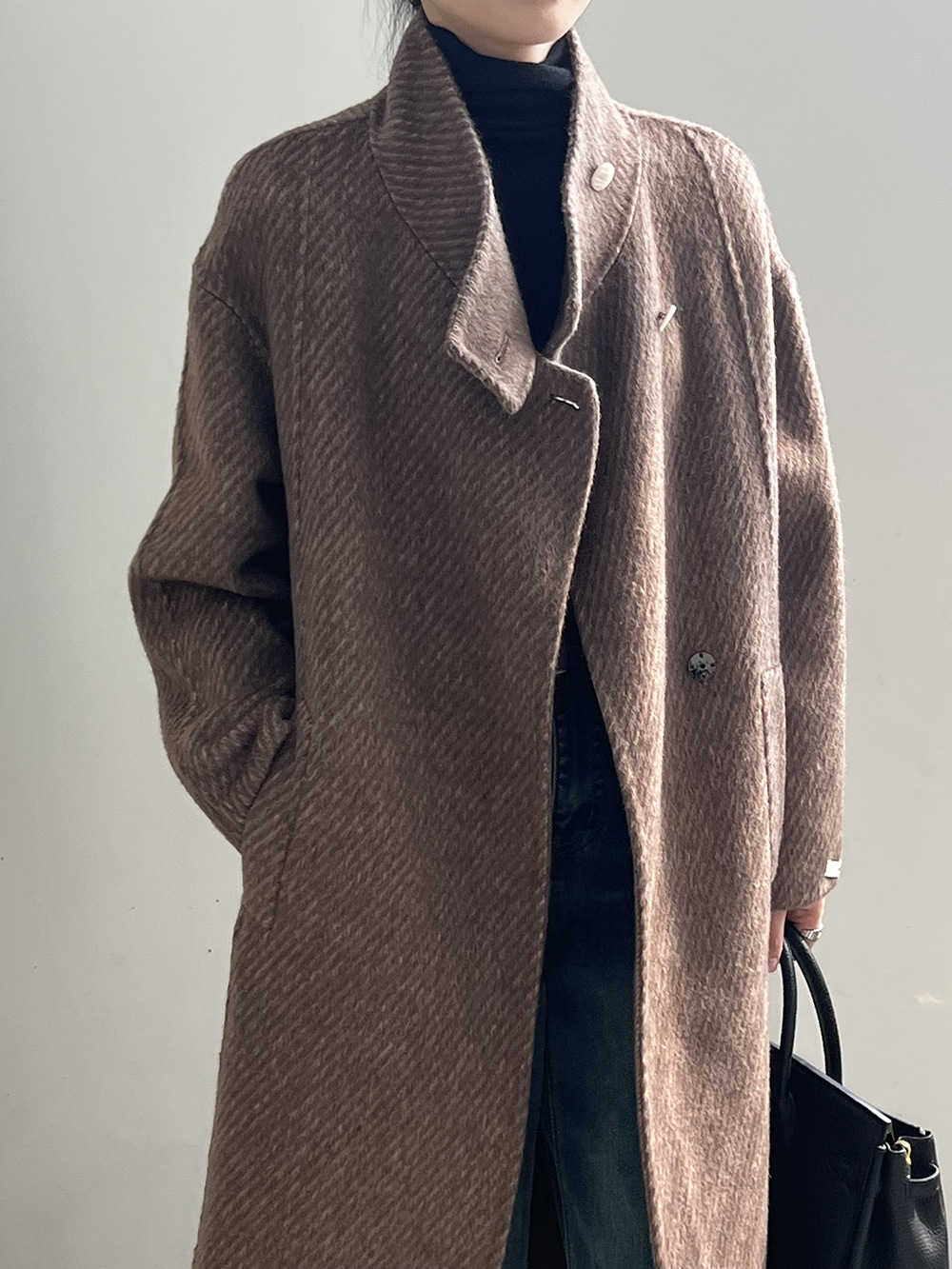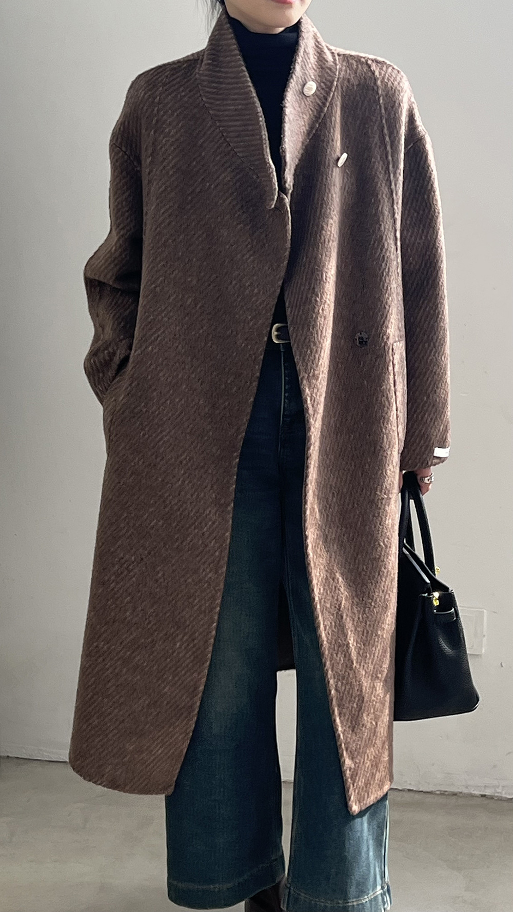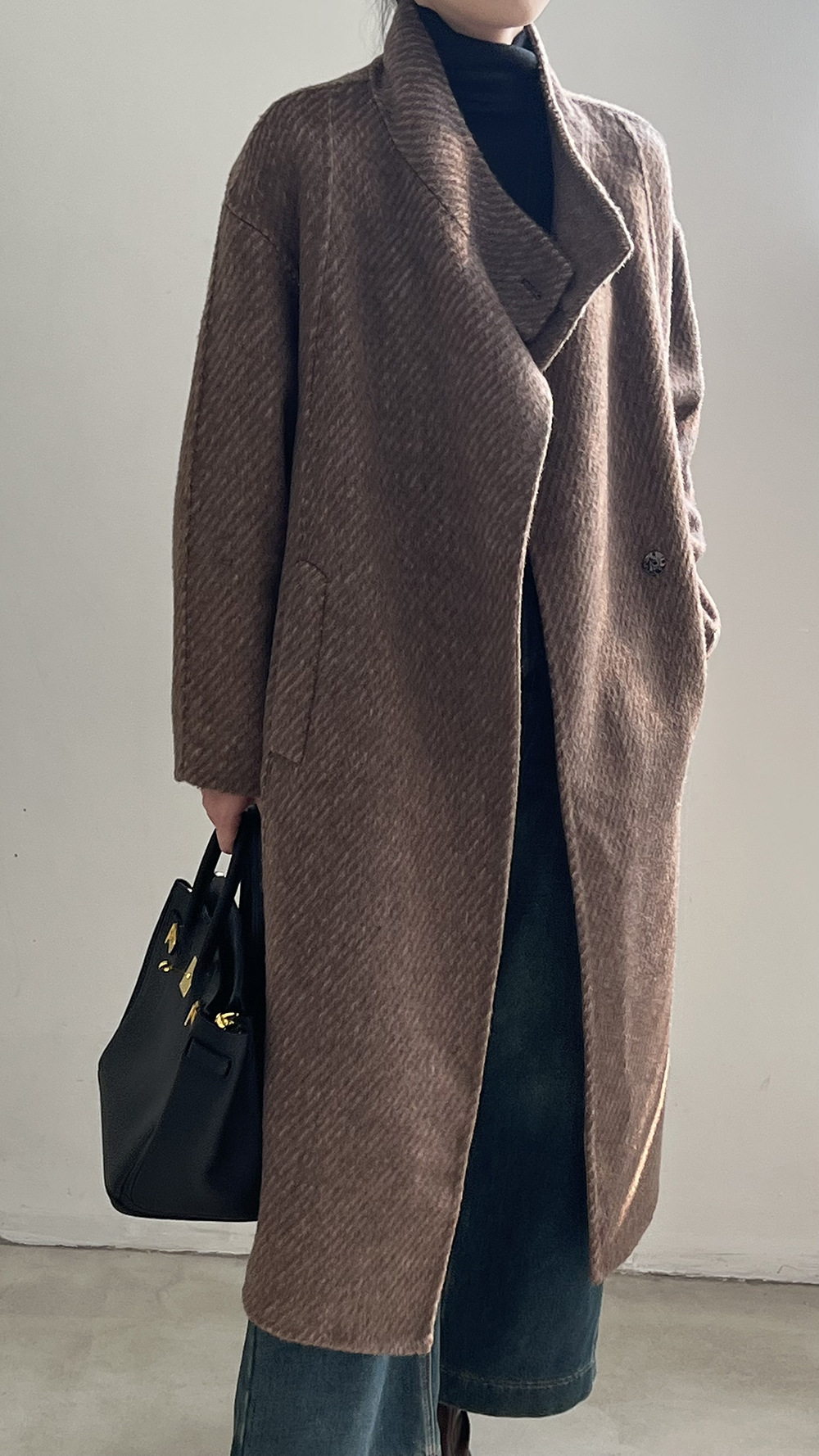 (48H出貨)高級厚版斜紋輪廓雙面混羊毛大衣-2色