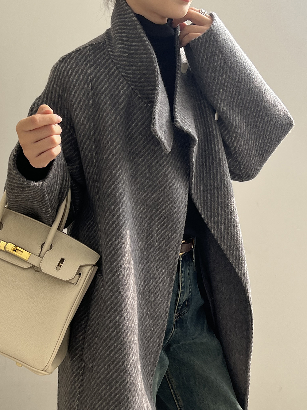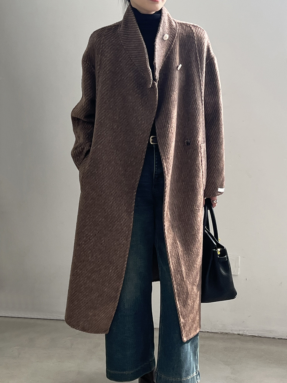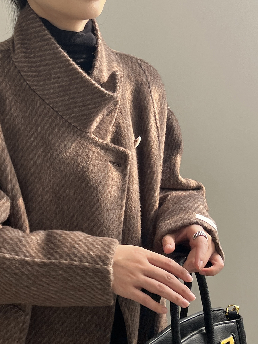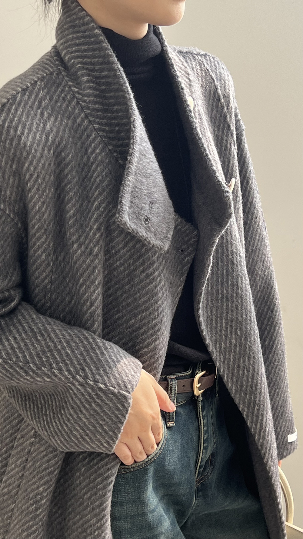 (48H出貨)高級厚版斜紋輪廓雙面混羊毛大衣-2色