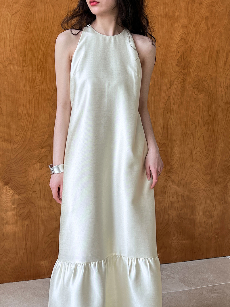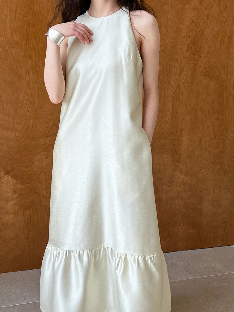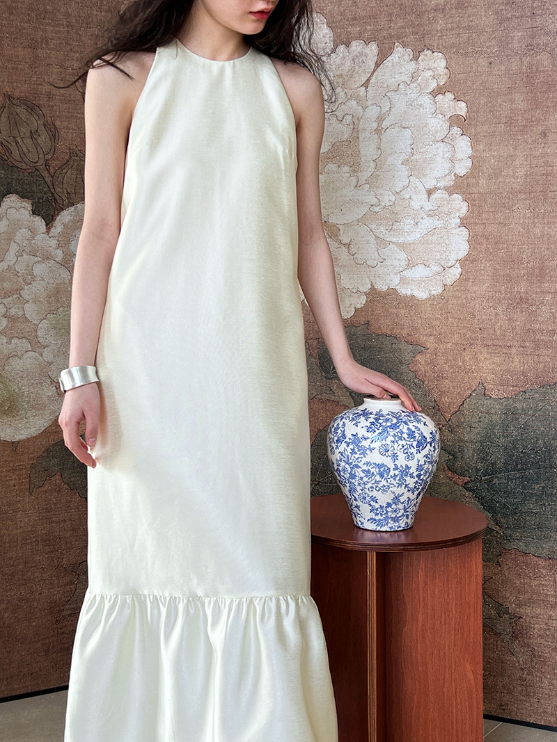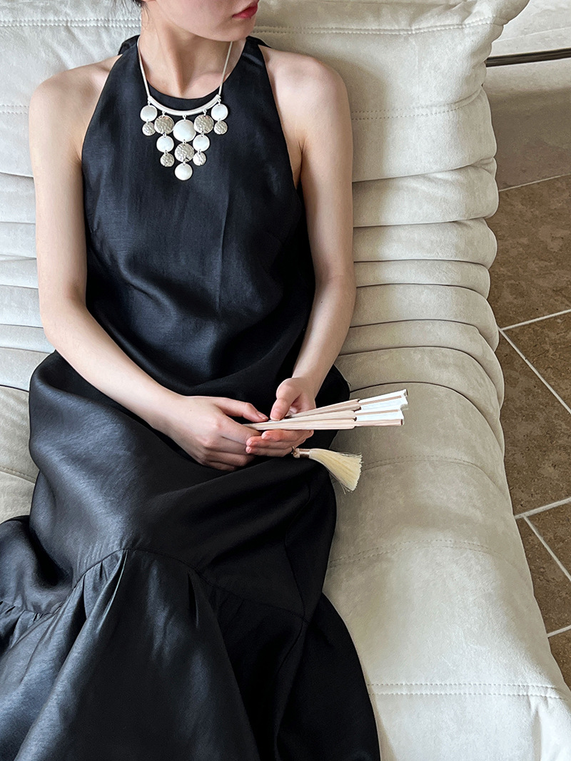 (48H出貨)高級感法式掛脖魚尾裙連身裙-2色