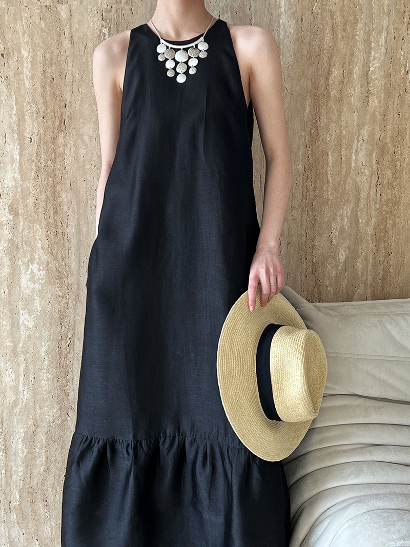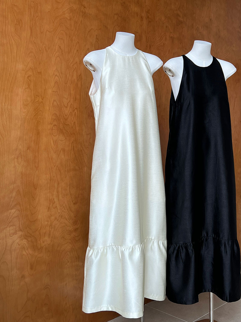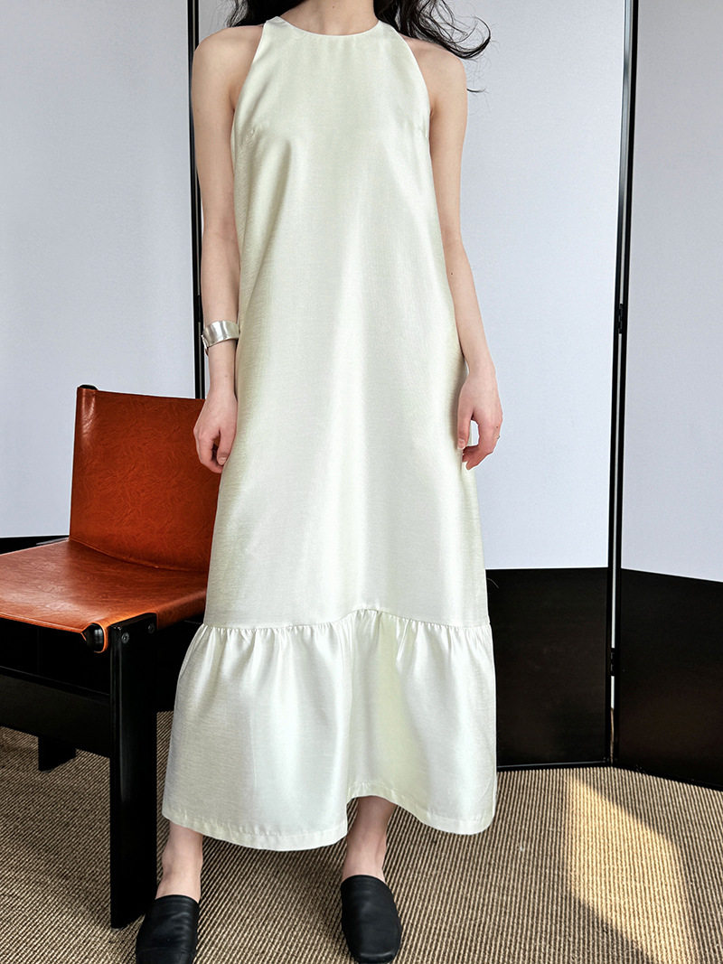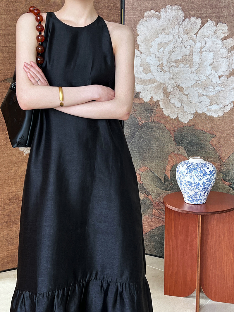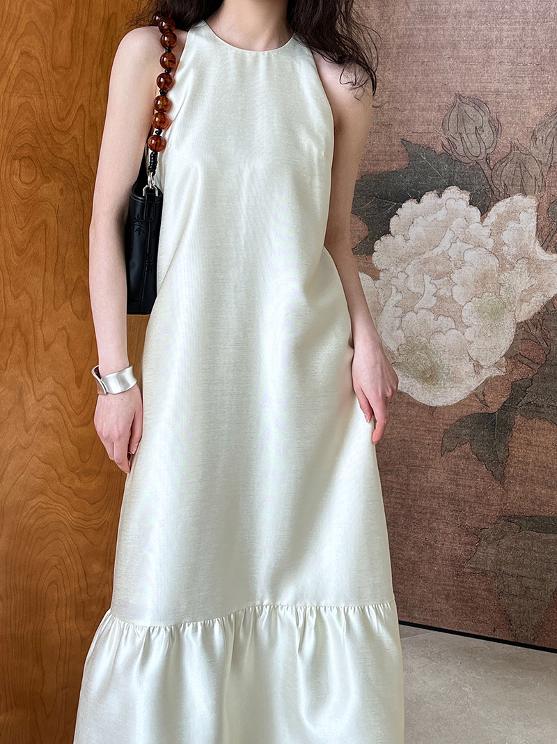 (48H出貨)高級感法式掛脖魚尾裙連身裙-2色