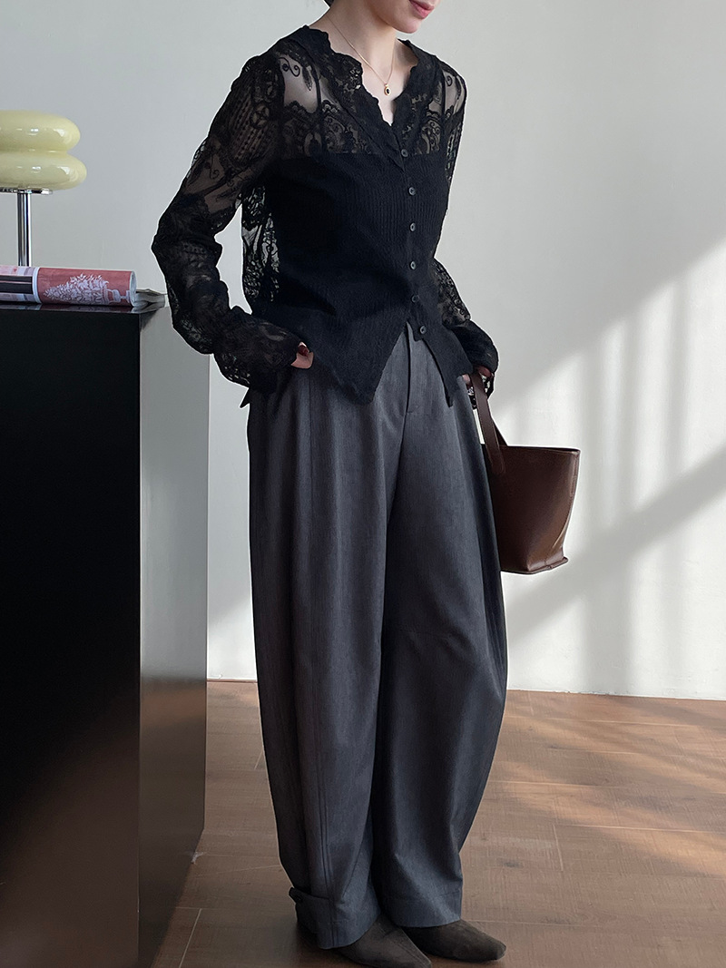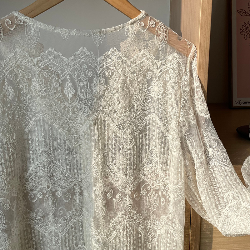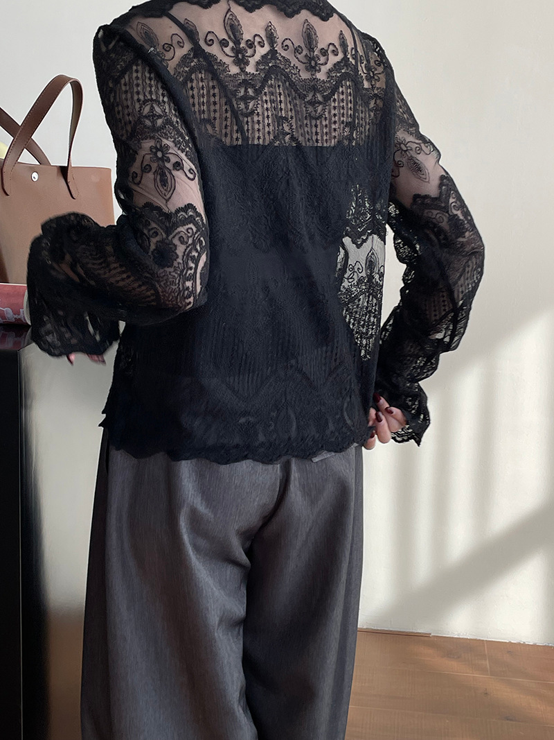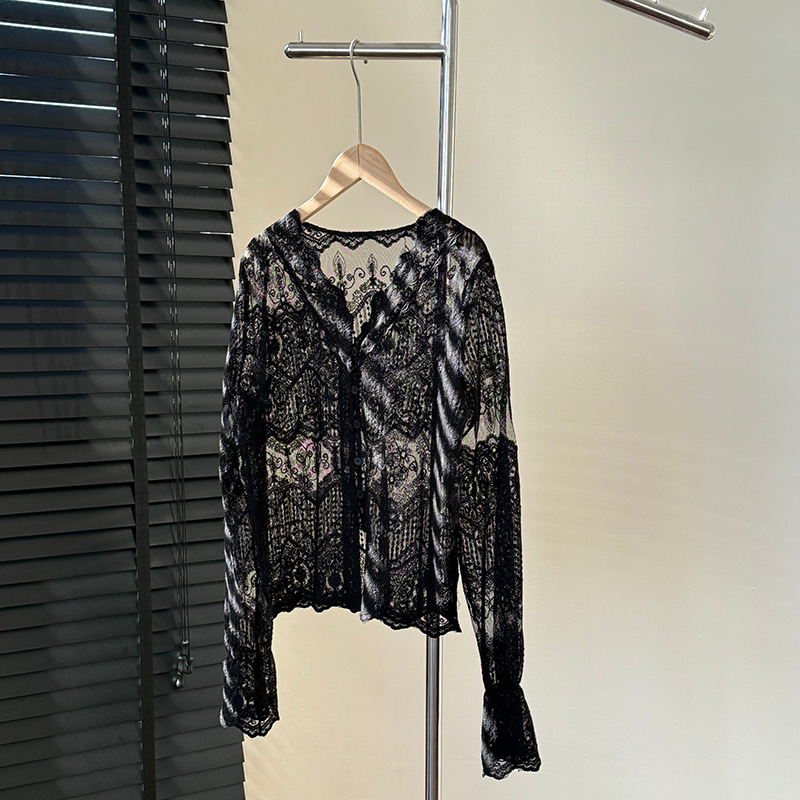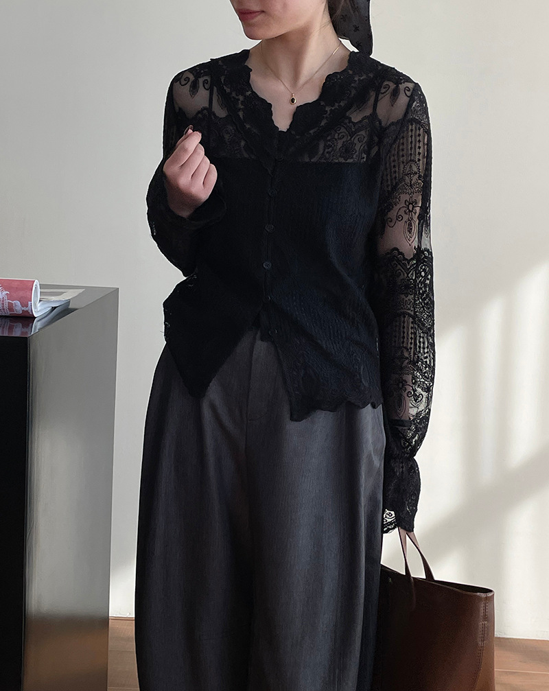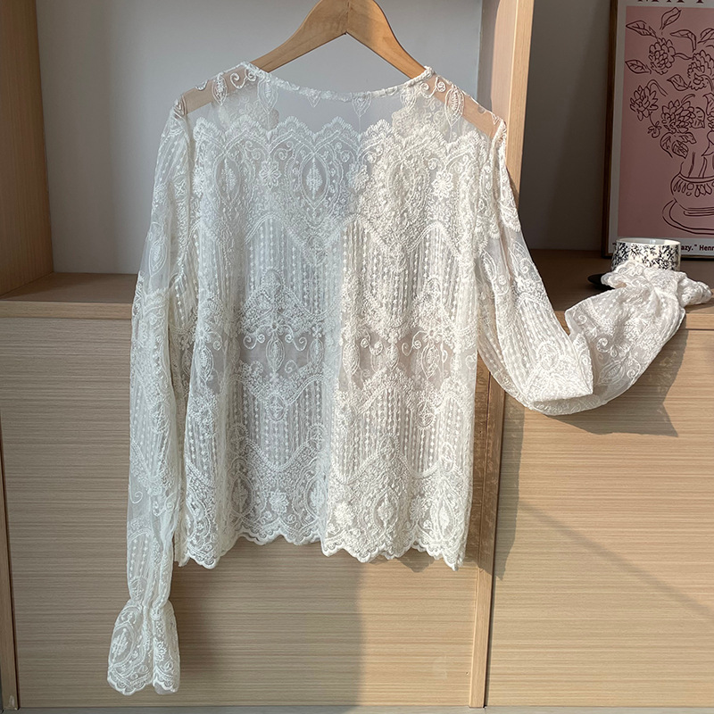 (48H出貨)V領蕾絲法式高級刺繡長袖襯衫-2色